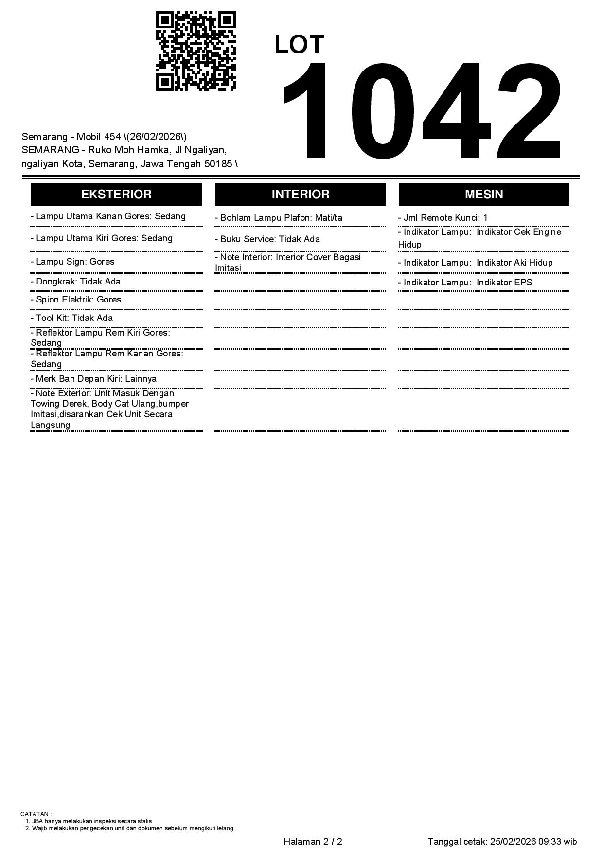 2. Peserta lelang wajib cek unit & dokumen