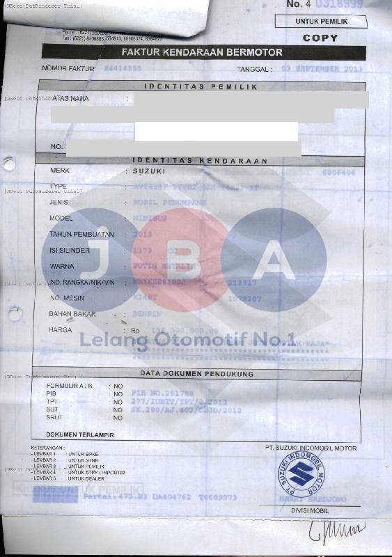 BLOKIR BBN WAJIB BALIK NAMA // EX BBN // TELAH LEPAS KEPEMILIKAN PADA CEK SAMSAT // TIPE PADA DOK DAN CEK SAMSAT AVI414F TYPE 2 SDX (4X2) MT // NOPOL FISIK BERBEDA/ PALSU //