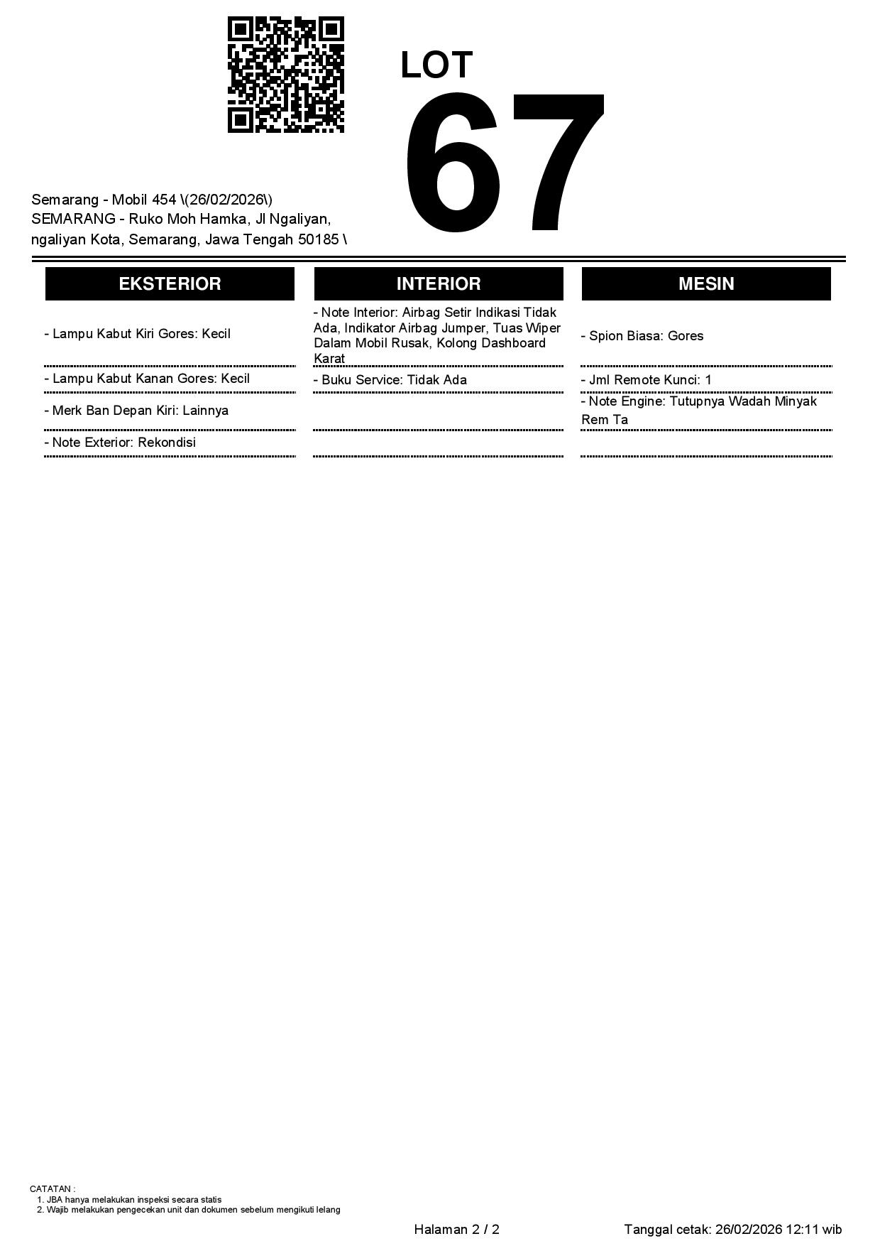 2. Peserta lelang wajib cek unit & dokumen