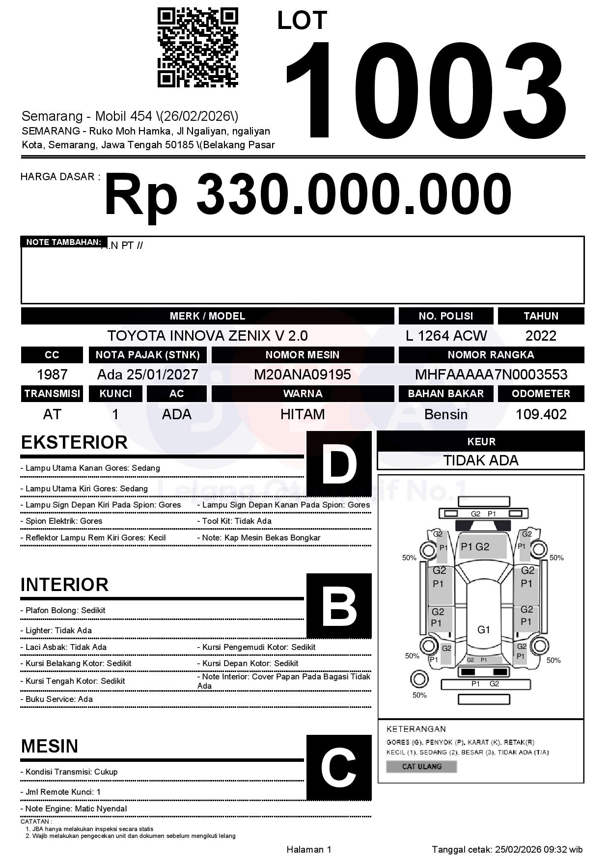 Tanggal Lelang: 26/02/2026 | 14:00 WIB