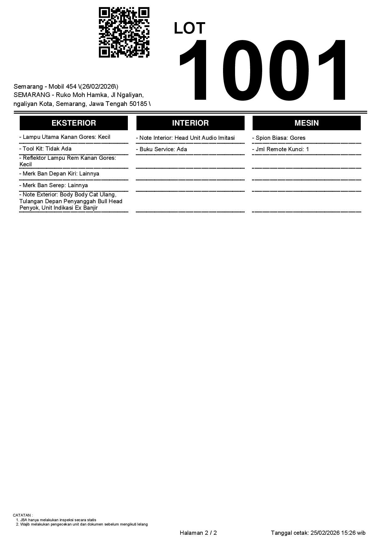 2. Peserta lelang wajib cek unit & dokumen
