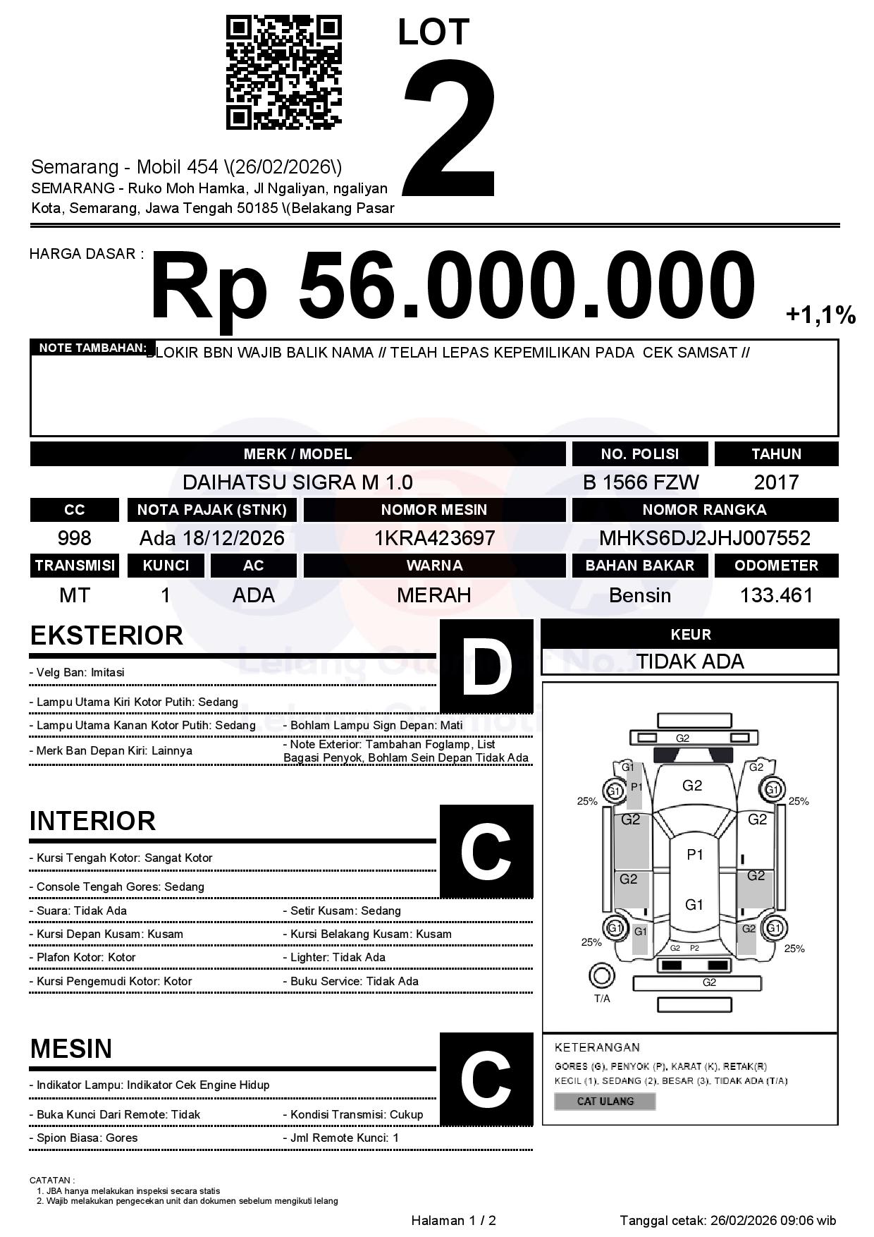 Tanggal Lelang: 26/02/2026 | 13:00 WIB