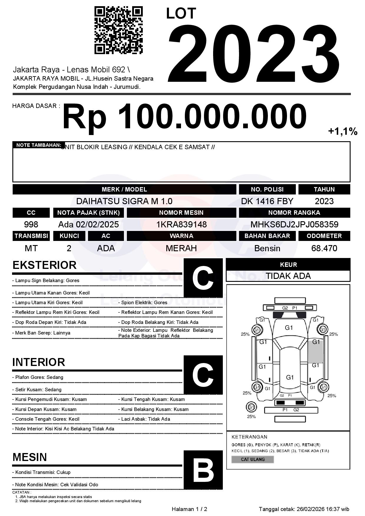 Tanggal Lelang: 26/02/2026 | 14:00 WIB