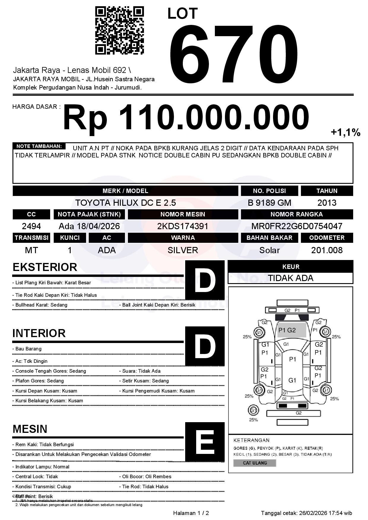 Tanggal Lelang: 26/02/2026 | 13:00 WIB