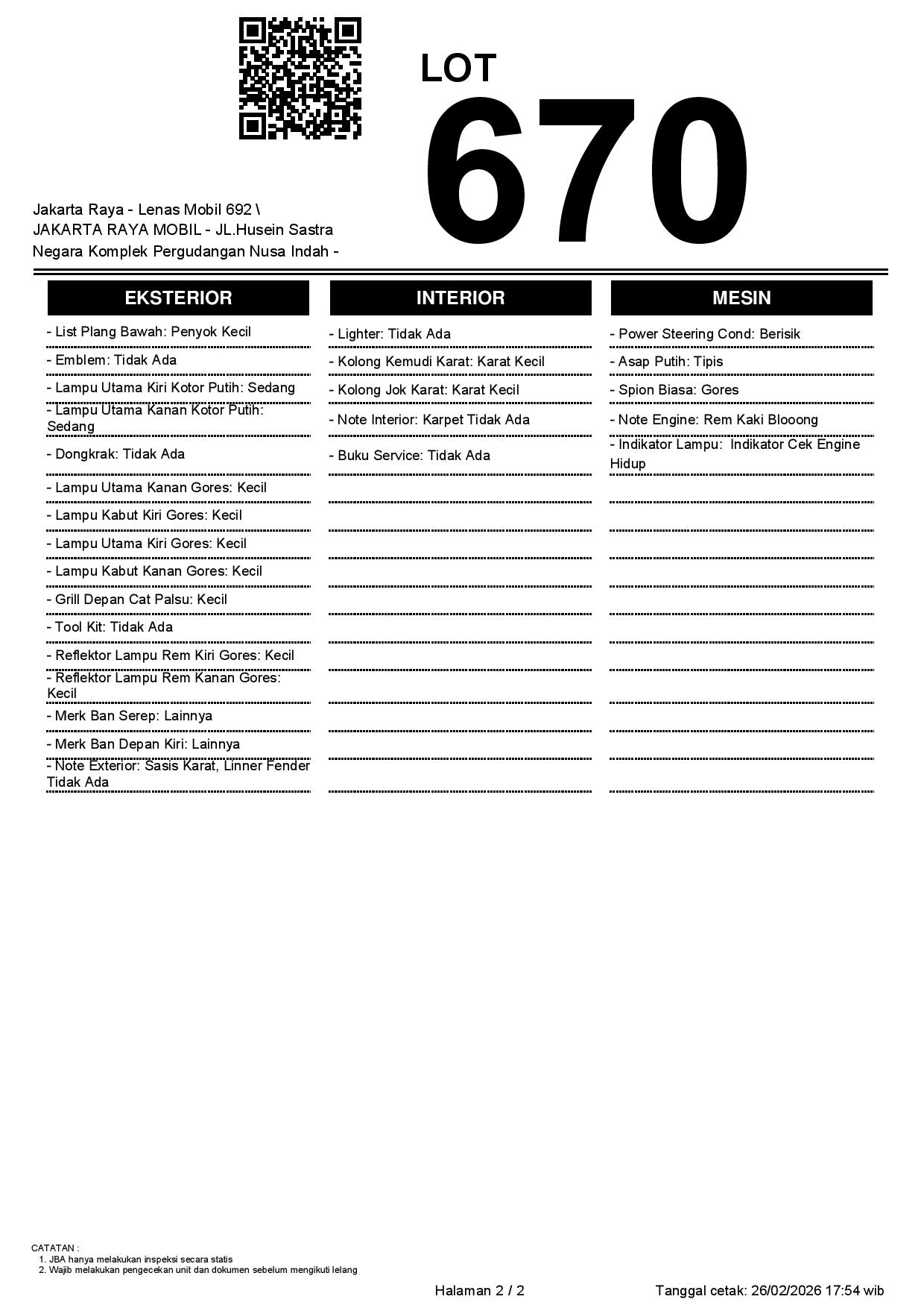 2. Peserta lelang wajib cek unit & dokumen