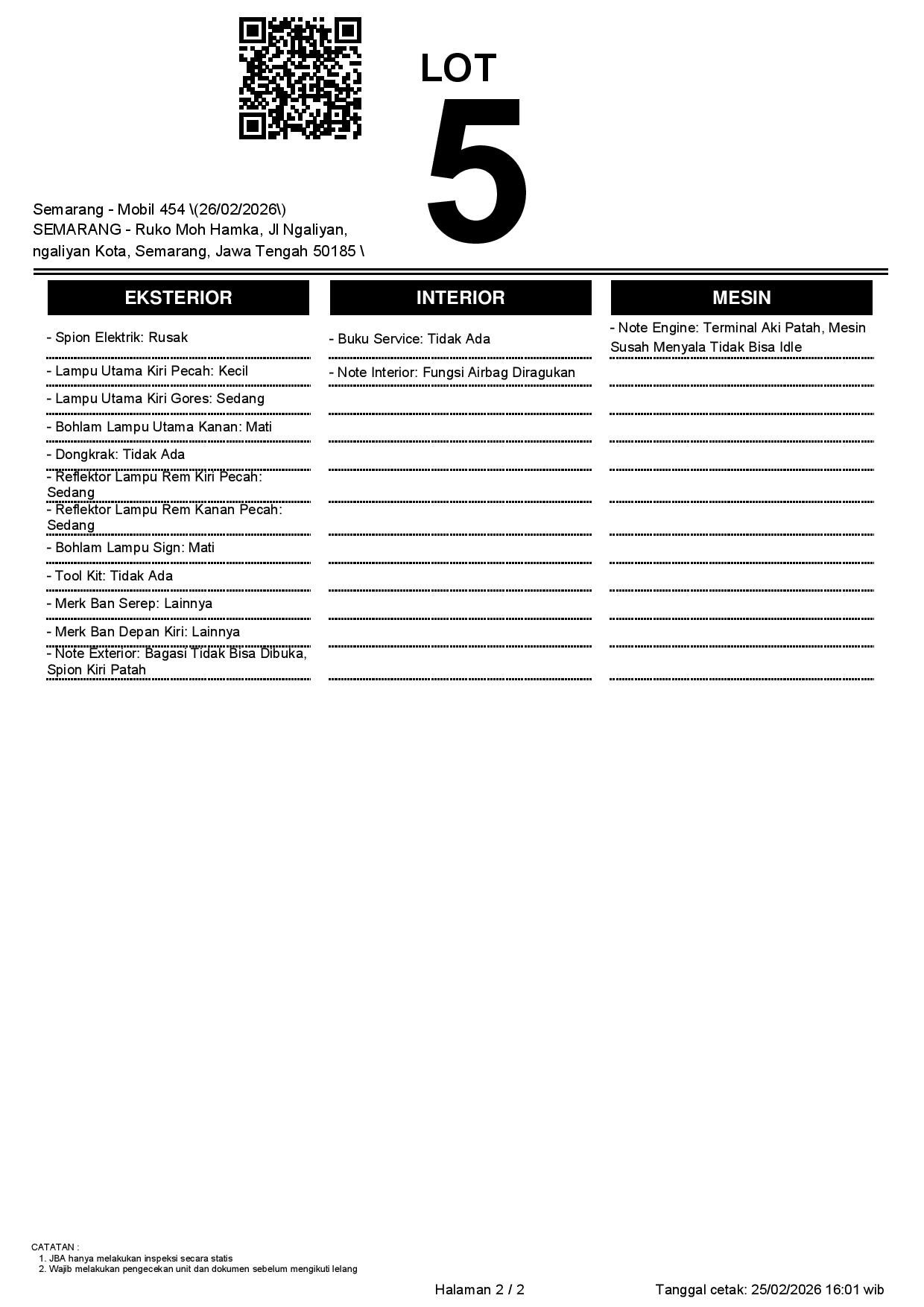 2. Peserta lelang wajib cek unit & dokumen