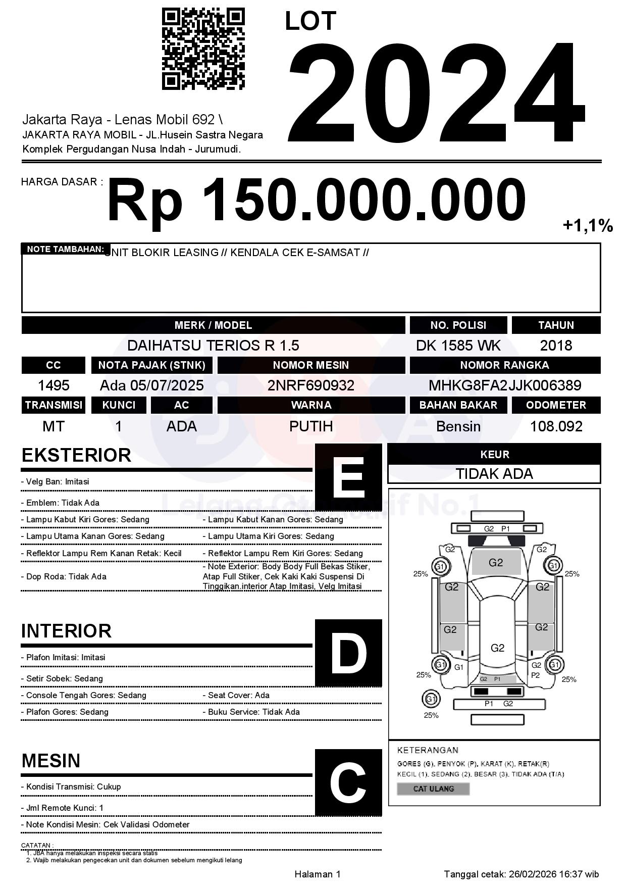 Tanggal Lelang: 26/02/2026 | 14:00 WIB