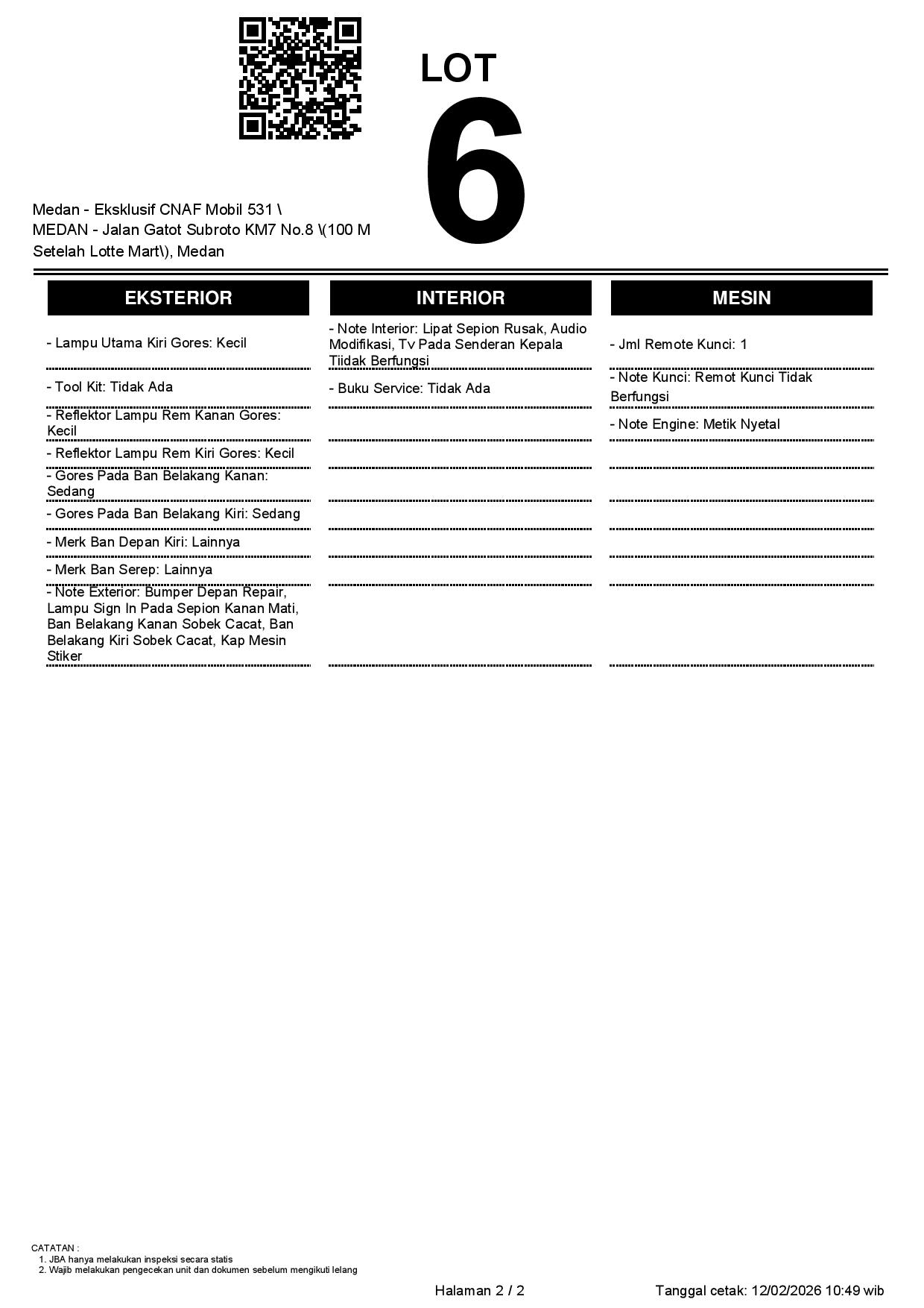 2. Peserta lelang wajib cek unit & dokumen