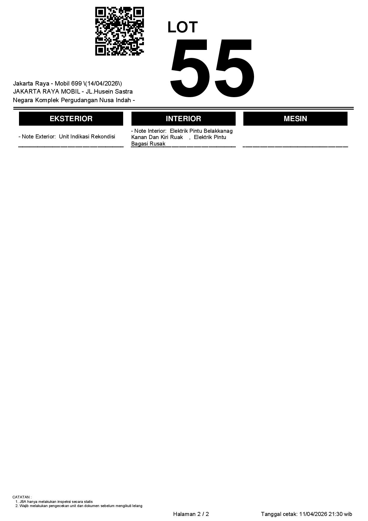 1. Peserta lelang wajib cek unit & dokumen