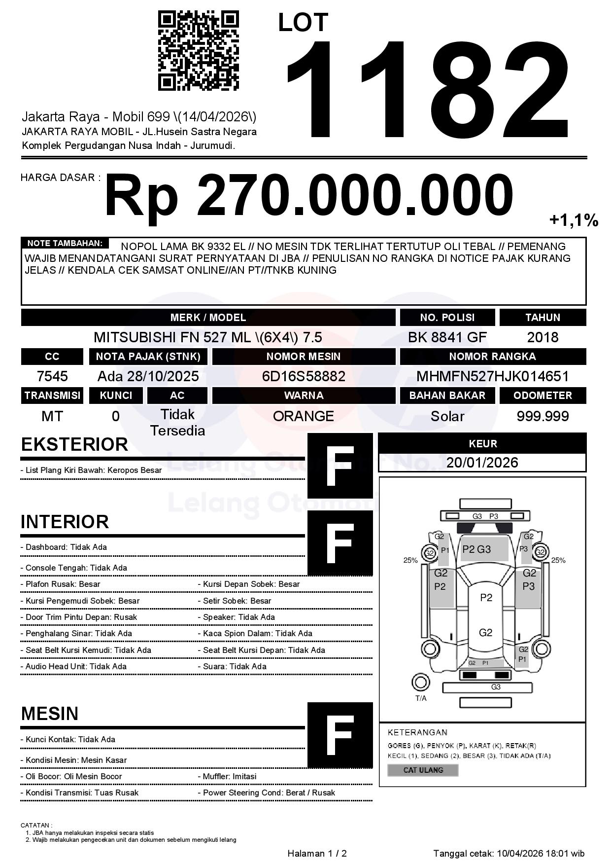 NOPOL LAMA BK 9332 EL // NO MESIN TDK TERLIHAT TERTUTUP OLI TEBAL // PEMENANG WAJIB MENANDATANGANI SURAT PERNYATAAN DI JBA // PENULISAN NO RANGKA DI NOTICE PAJAK KURANG JELAS // KENDALA CEK SAMSAT ONLINE//AN PT//TNKB KUNING