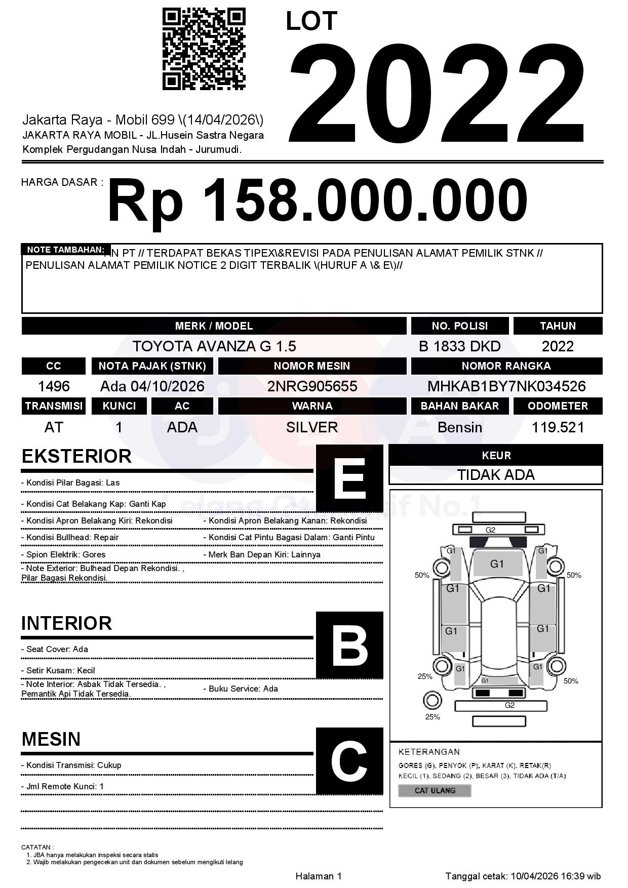 Tanggal Lelang: 14/04/2026 | 14:00 WIB