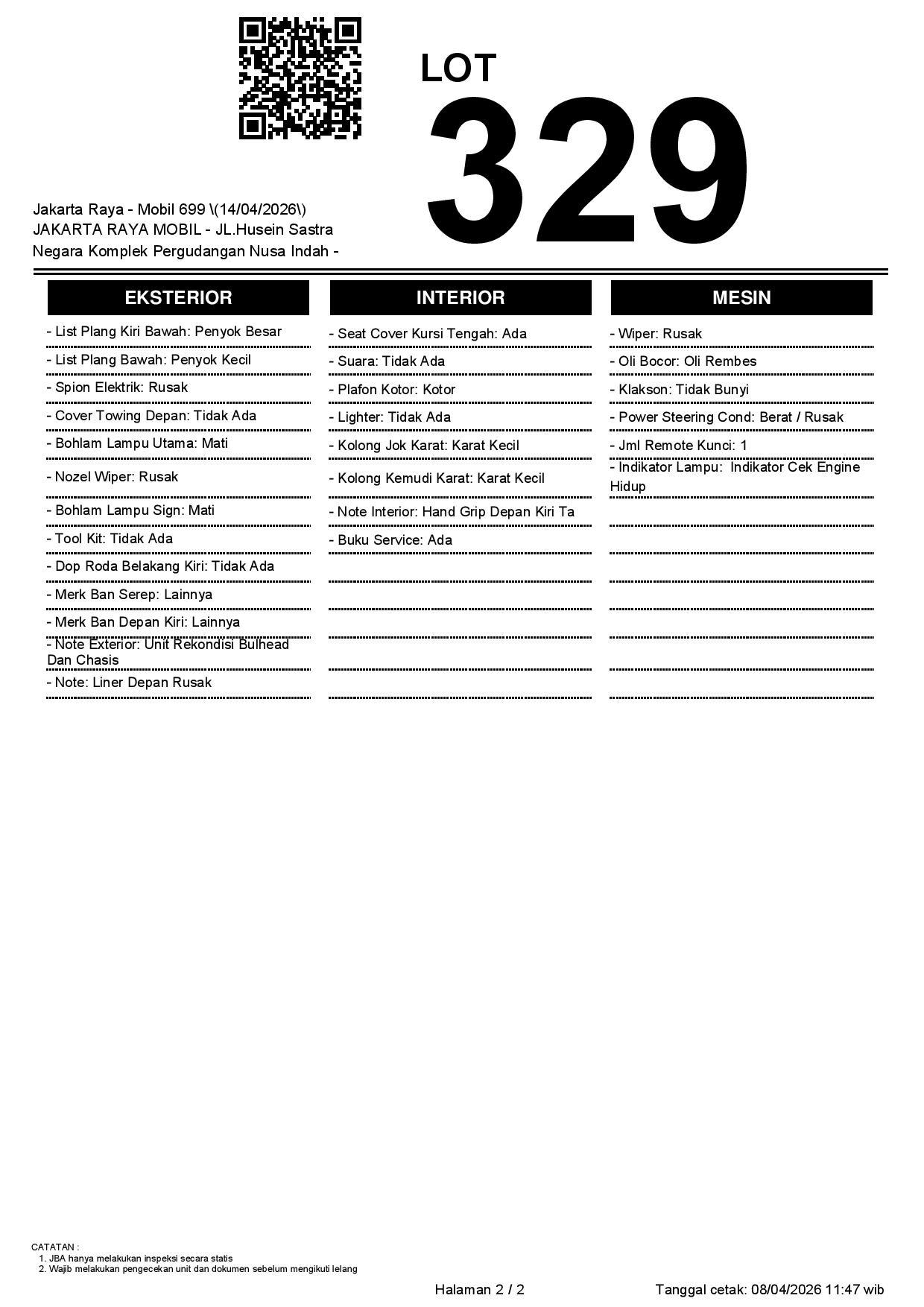 1. Peserta lelang wajib cek unit & dokumen
