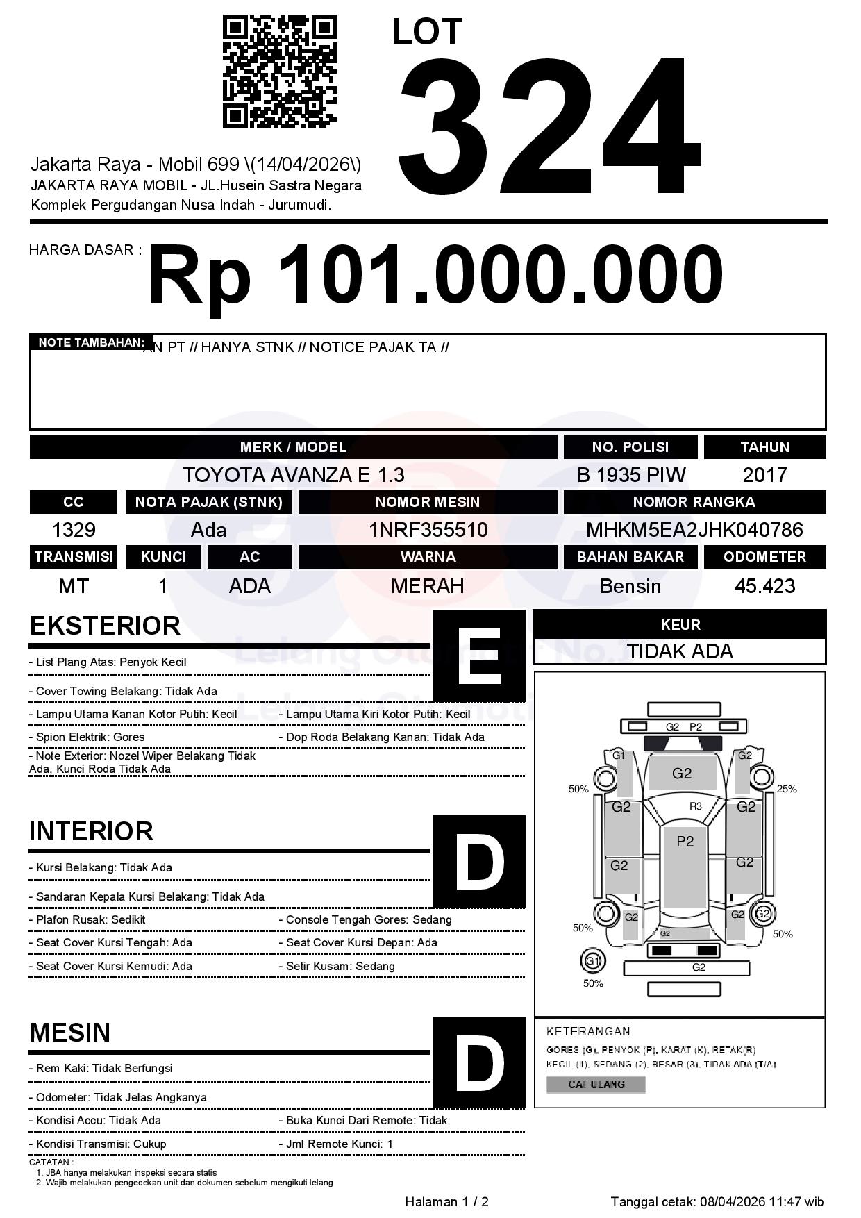 Tanggal Lelang: 14/04/2026 | 13:00 WIB