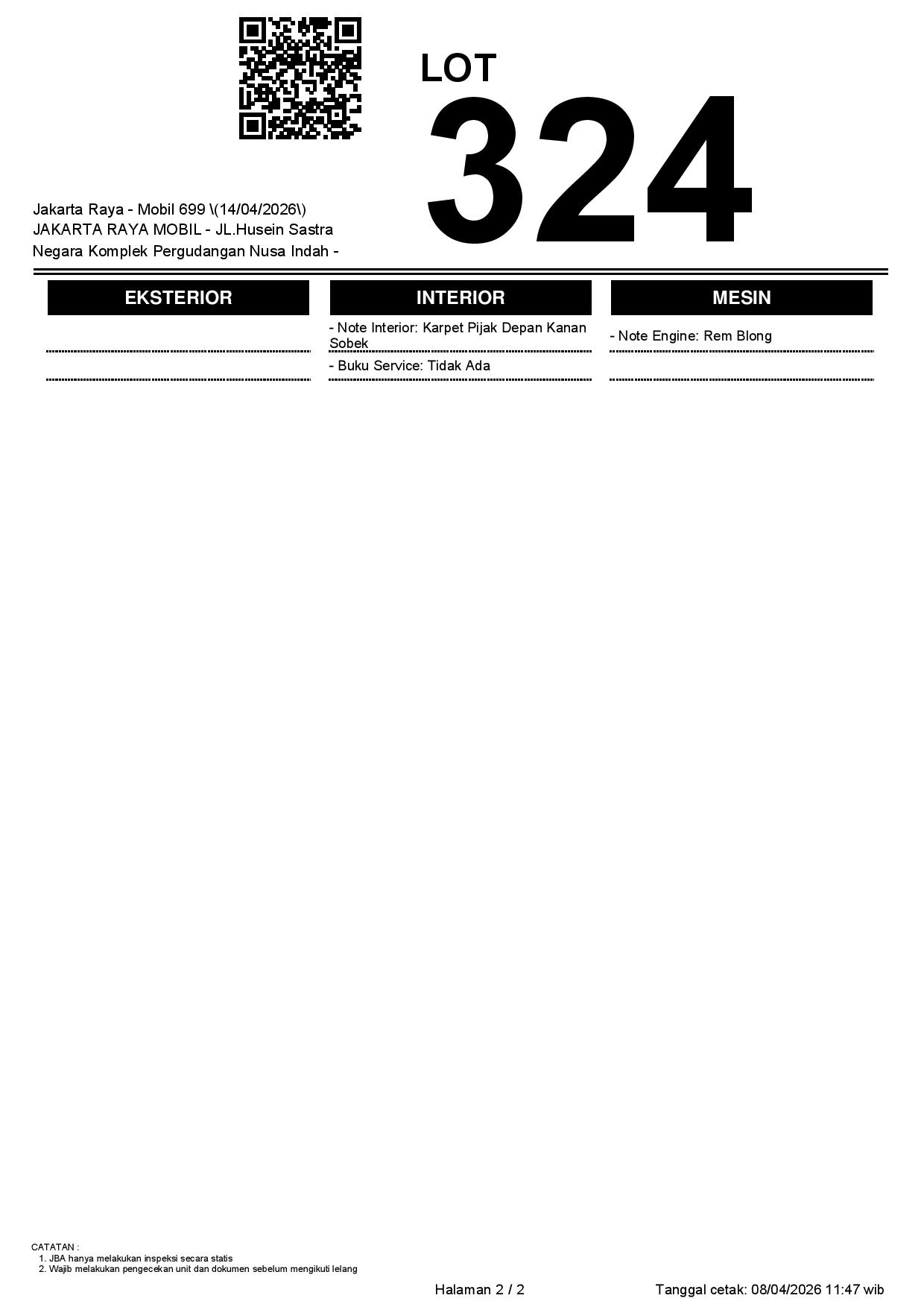 1. Peserta lelang wajib cek unit & dokumen