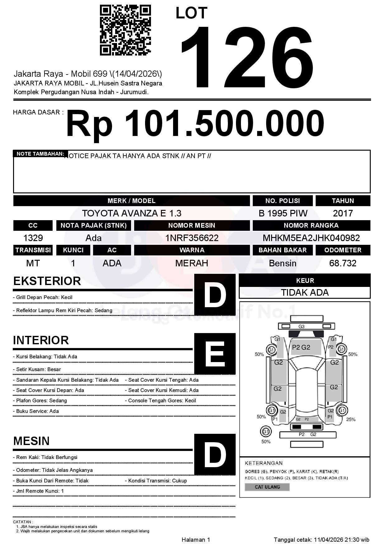 Tanggal Lelang: 14/04/2026 | 13:00 WIB