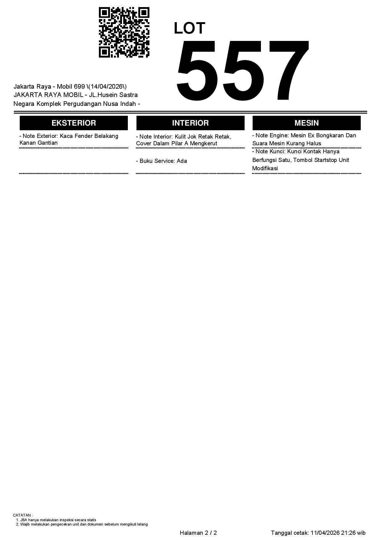 1. Peserta lelang wajib cek unit & dokumen