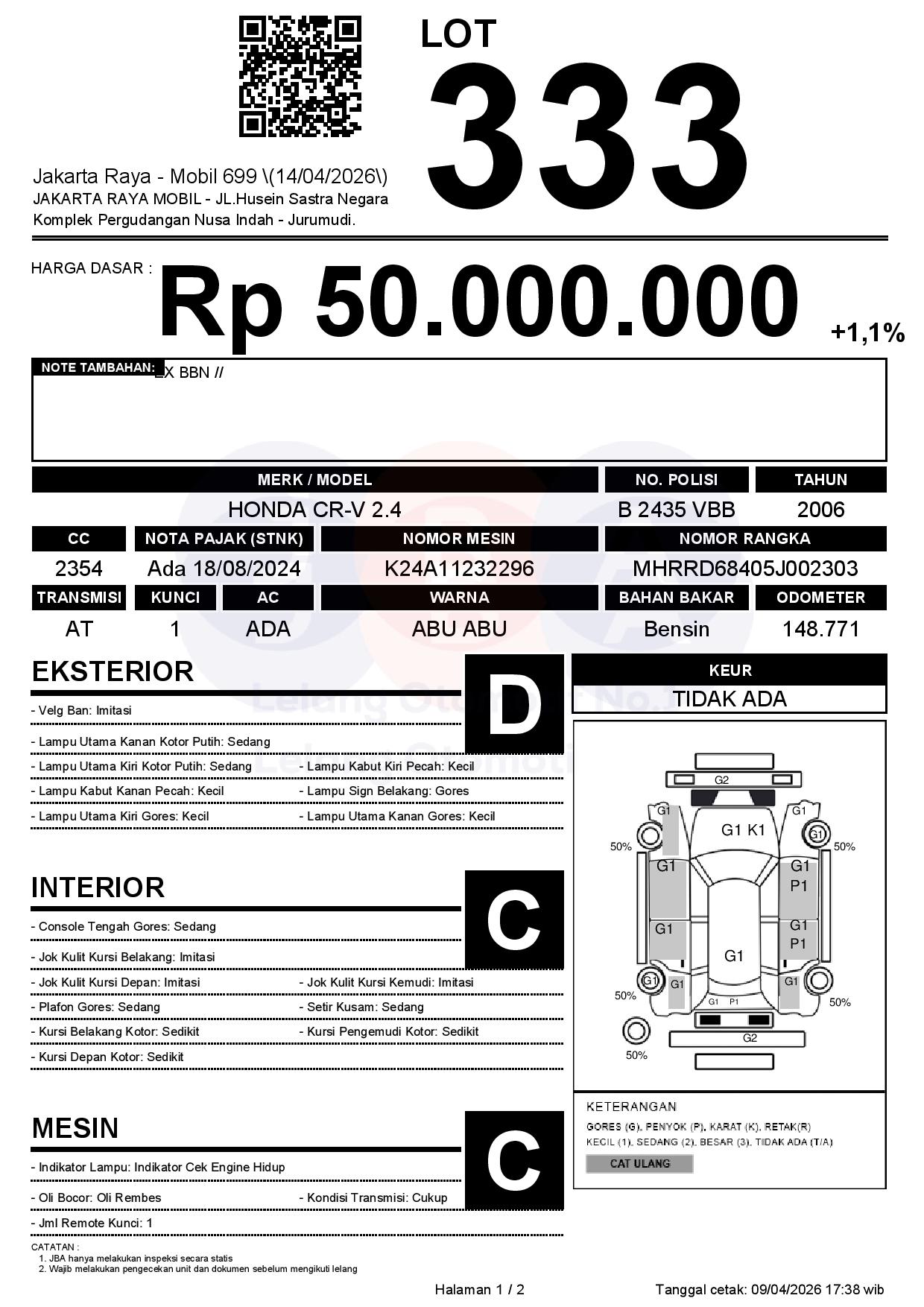 Tanggal Lelang: 14/04/2026 | 13:00 WIB