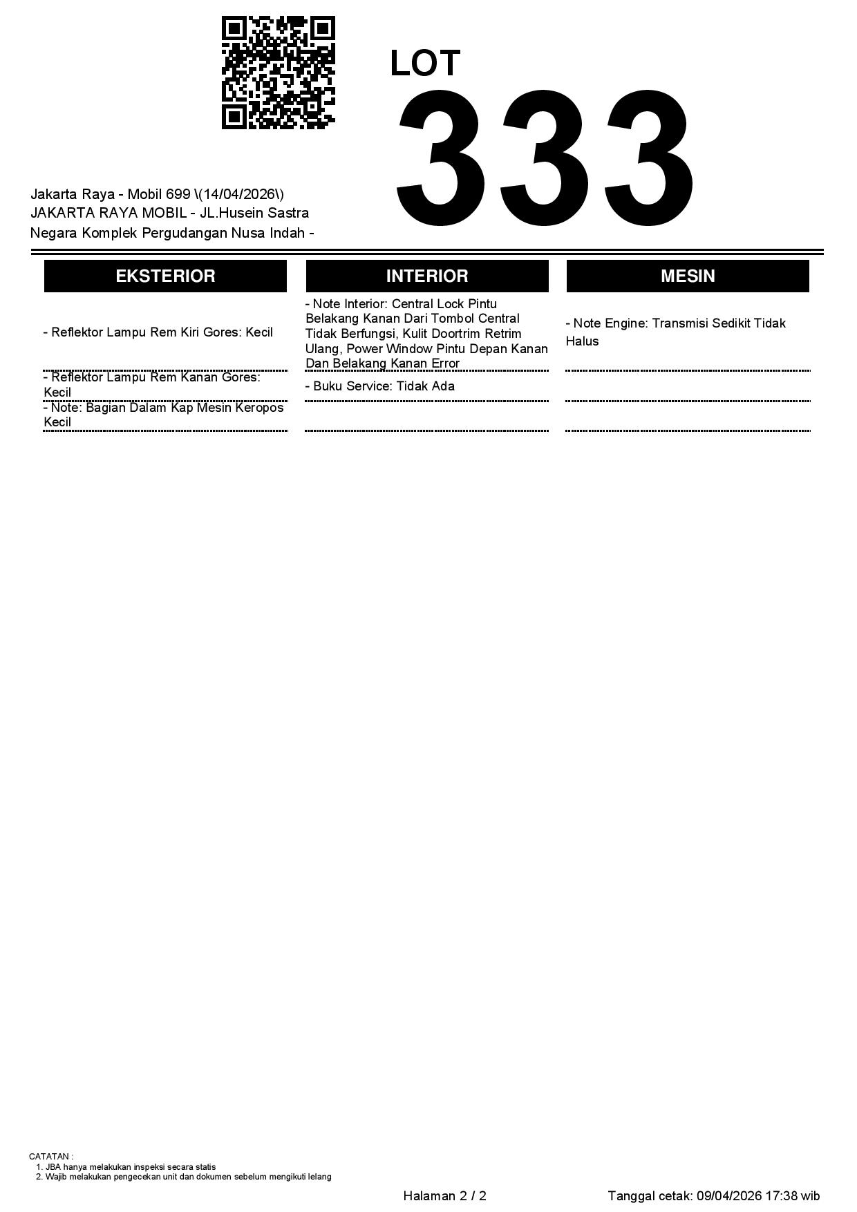 2. Peserta lelang wajib cek unit & dokumen