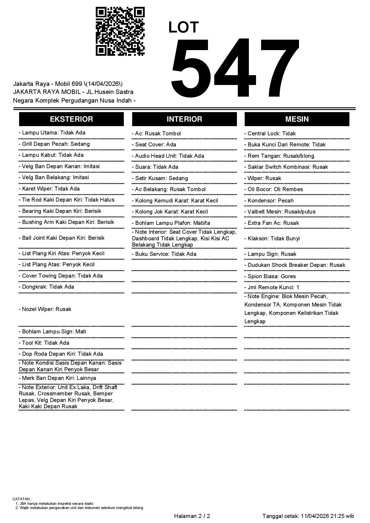 2. Peserta lelang wajib cek unit & dokumen