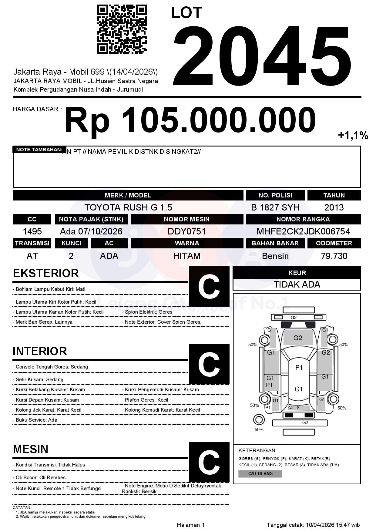 2. Peserta lelang wajib cek unit & dokumen