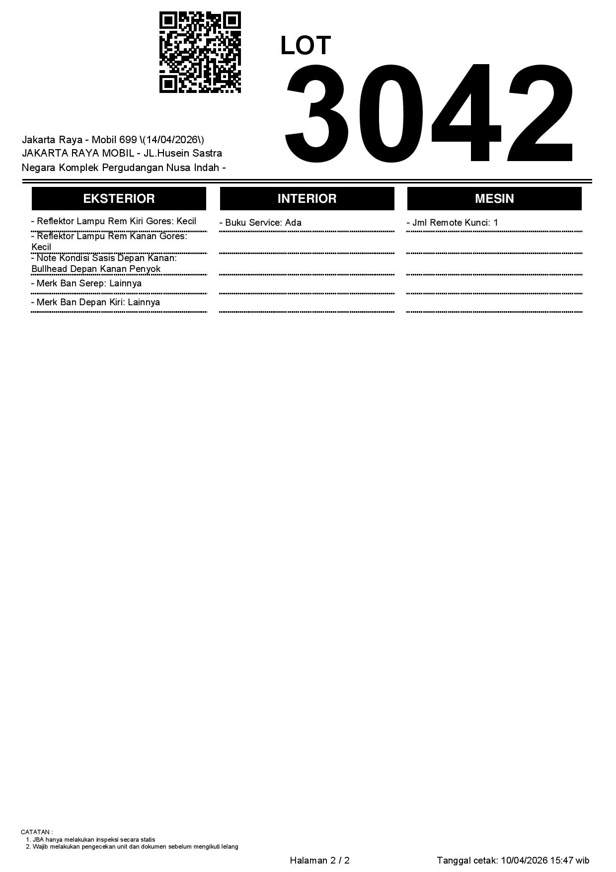 1. Peserta lelang wajib cek unit & dokumen