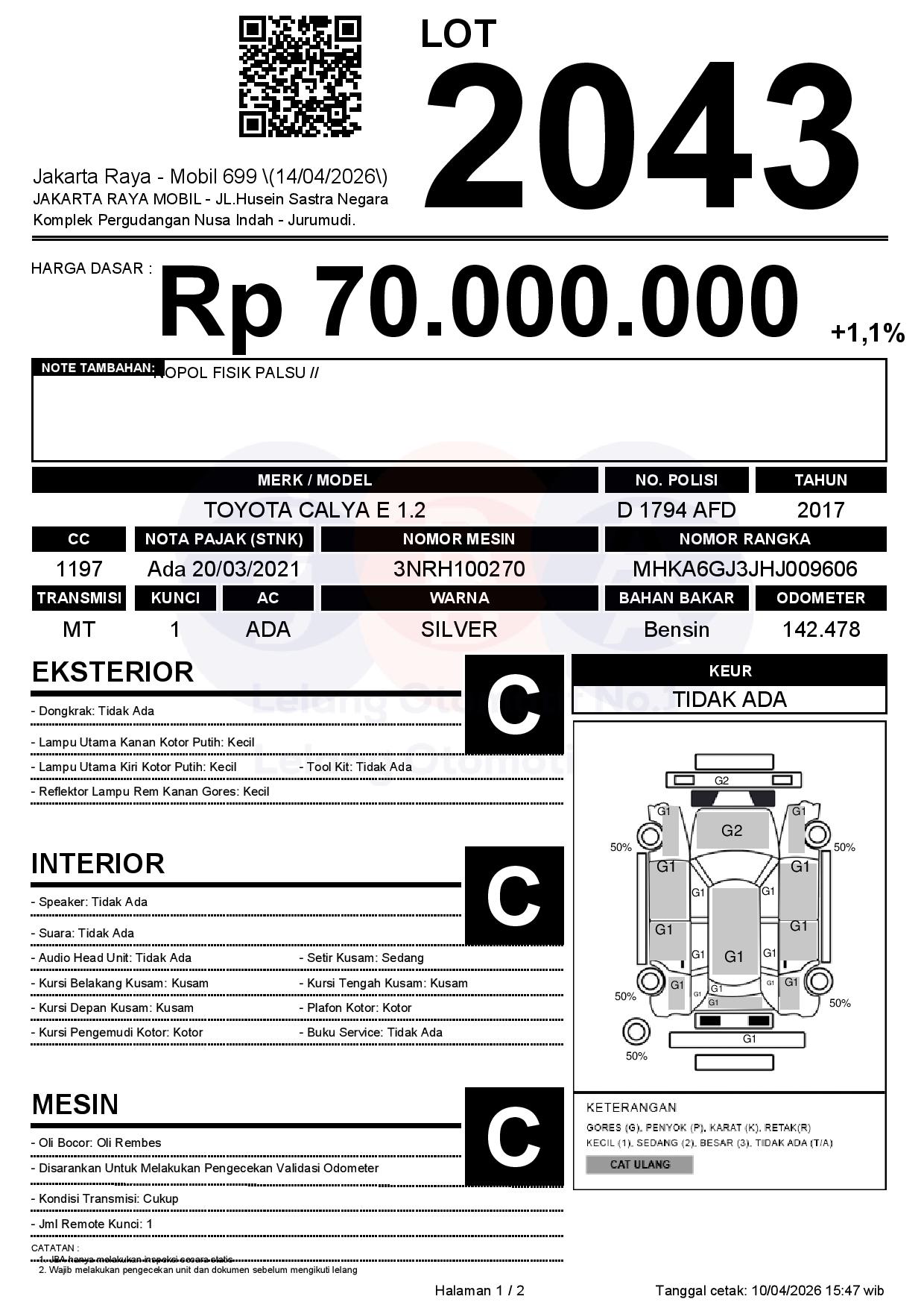 Tanggal Lelang: 14/04/2026 | 14:00 WIB