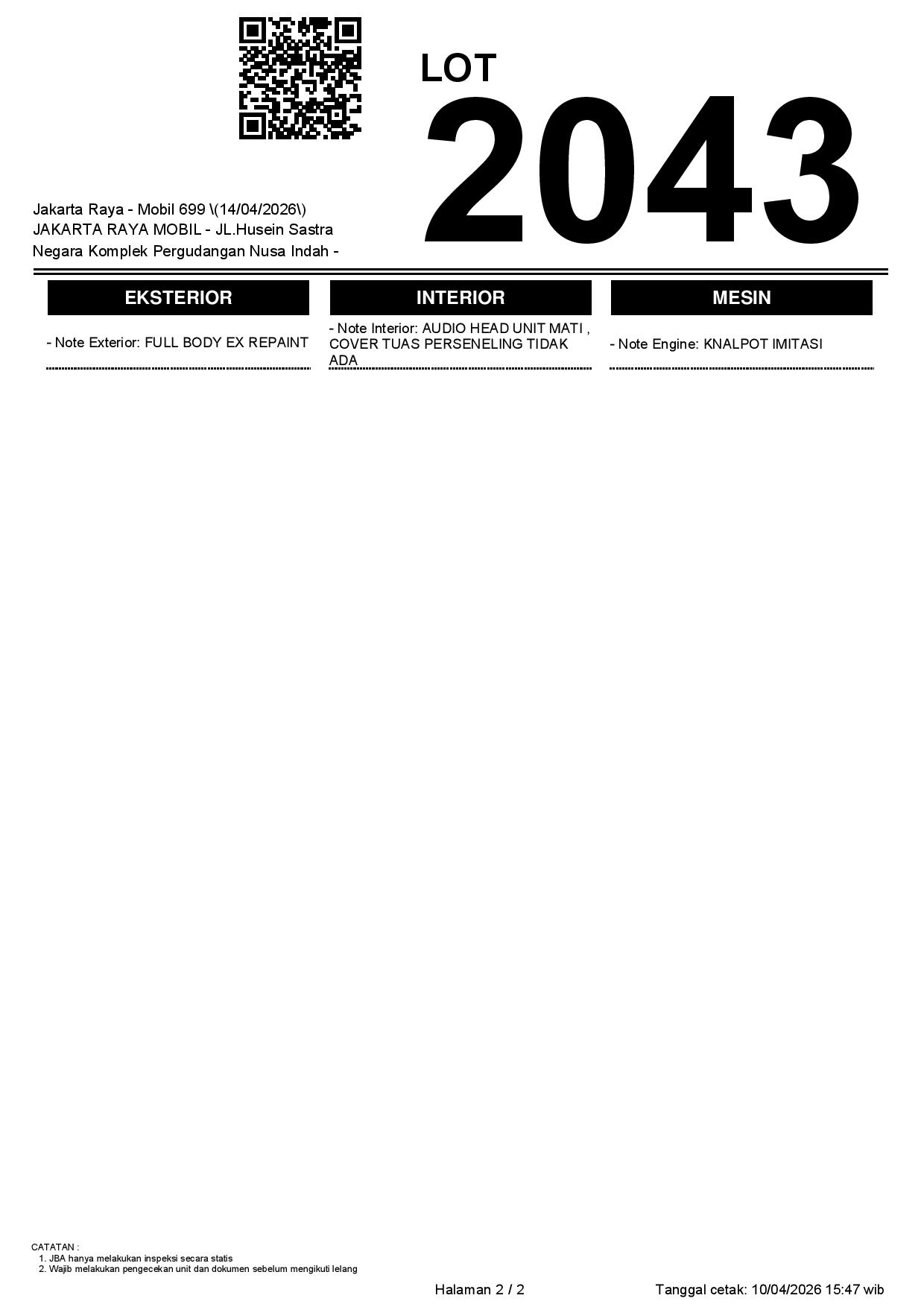 2. Peserta lelang wajib cek unit & dokumen