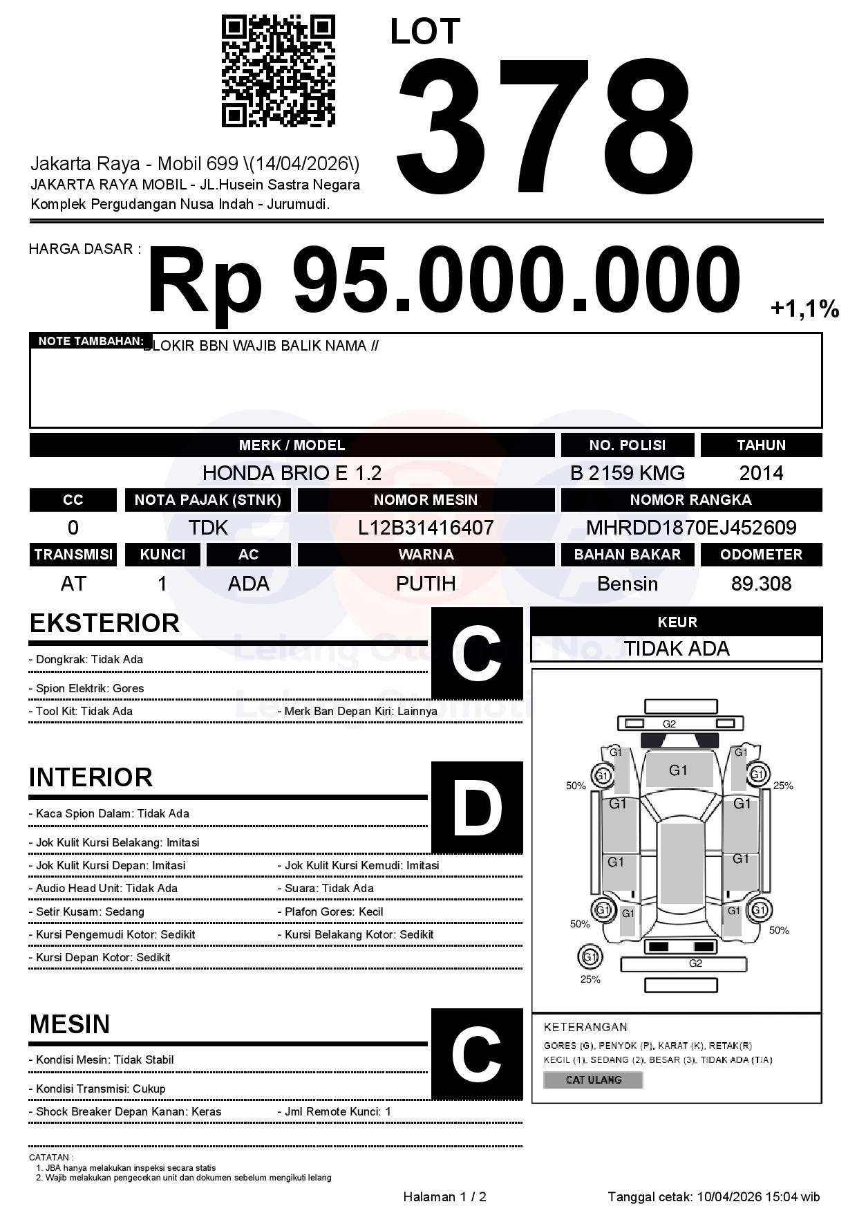 Tanggal Lelang: 14/04/2026 | 13:00 WIB