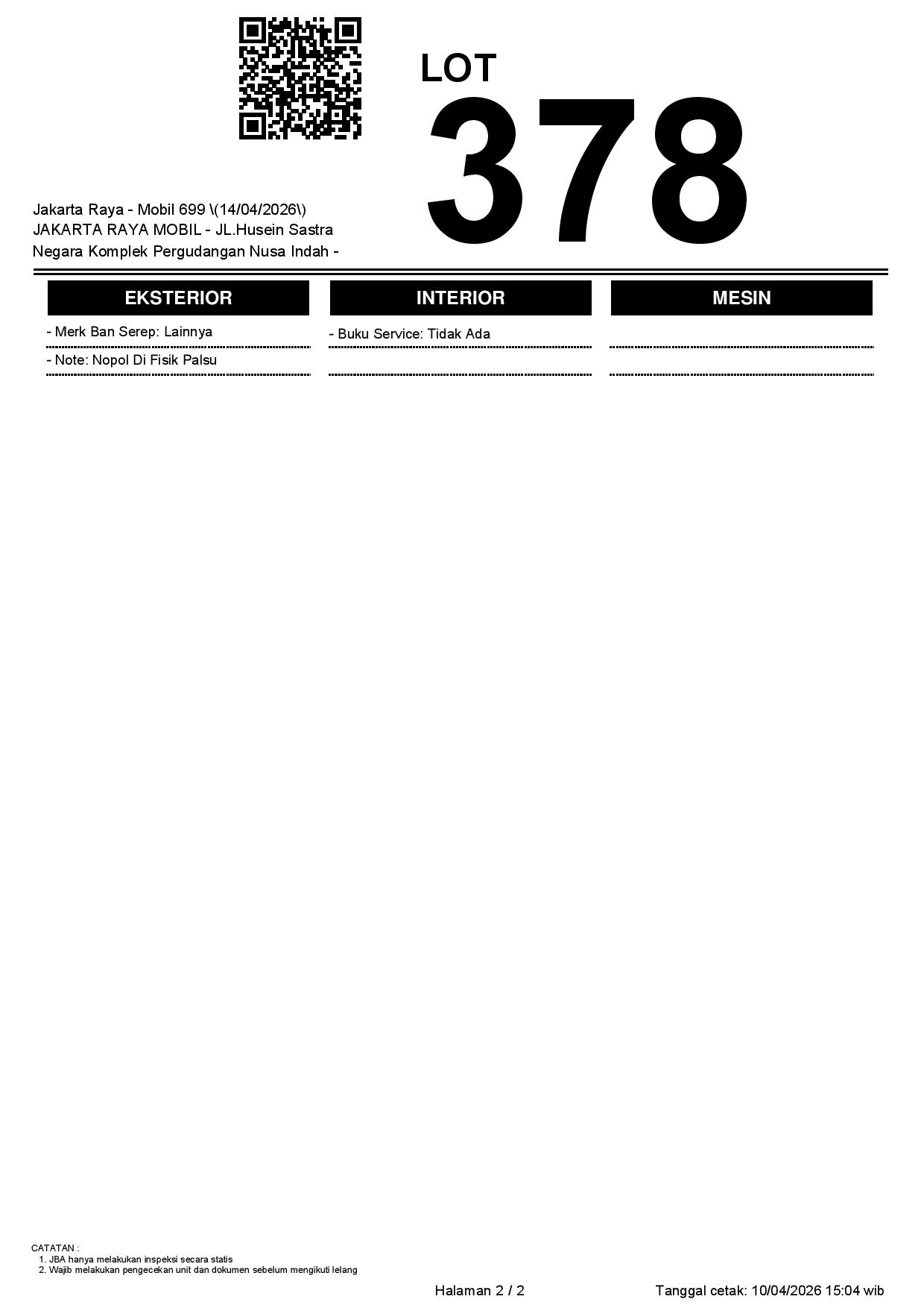 2. Peserta lelang wajib cek unit & dokumen