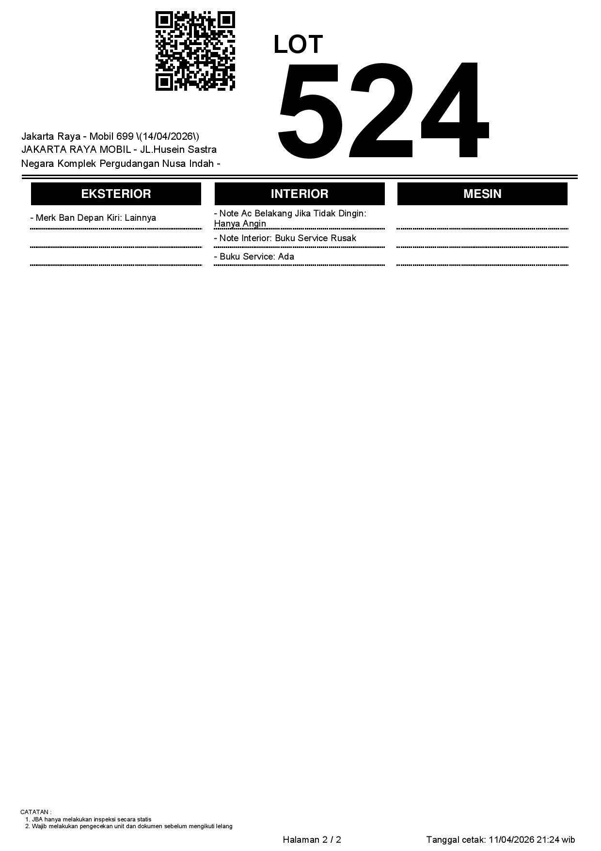 2. Peserta lelang wajib cek unit & dokumen