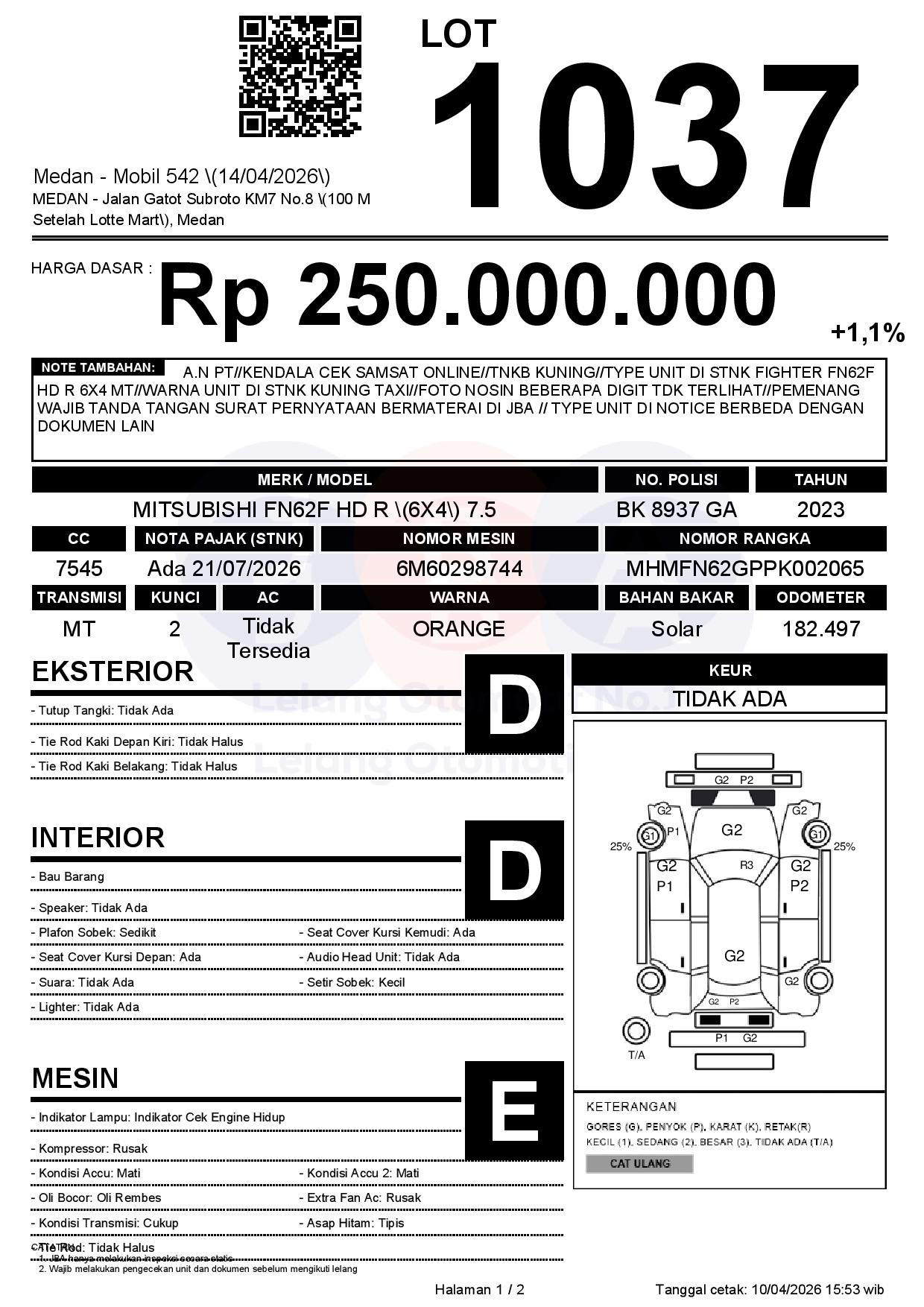 A.N PT//KENDALA CEK SAMSAT ONLINE//TNKB KUNING//TYPE UNIT DI STNK FIGHTER FN62F HD R 6X4 MT//WARNA UNIT DI STNK KUNING TAXI//FOTO NOSIN BEBERAPA DIGIT TDK TERLIHAT//PEMENANG WAJIB TANDA TANGAN SURAT PERNYATAAN BERMATERAI DI JBA // TYPE UNIT DI NOTICE BERBEDA DENGAN DOKUMEN LAIN