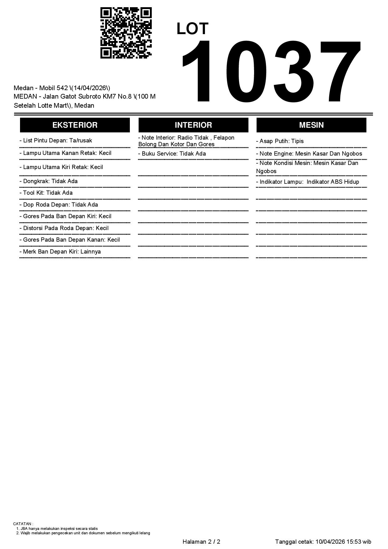 2. Peserta lelang wajib cek unit & dokumen