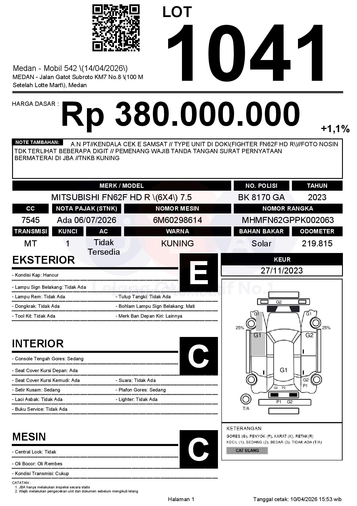 A.N PT//KENDALA CEK E SAMSAT // TYPE UNIT DI DOK(FIGHTER FN62F HD R)//FOTO NOSIN TDK TERLIHAT BEBERAPA DIGIT // PEMENANG WAJIB TANDA TANGAN SURAT PERNYATAAN BERMATERAI DI JBA //TNKB KUNING