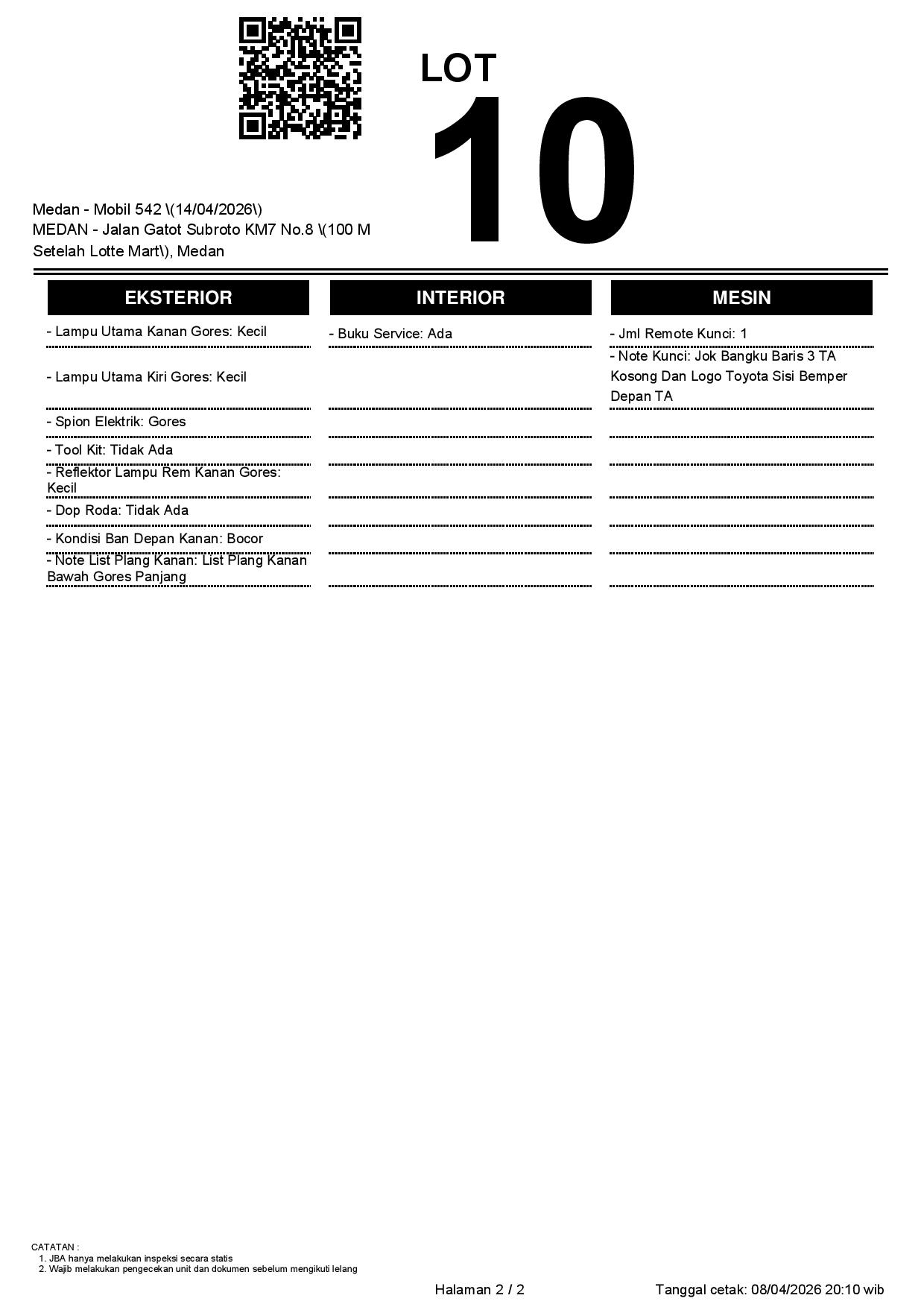 1. Peserta lelang wajib cek unit & dokumen