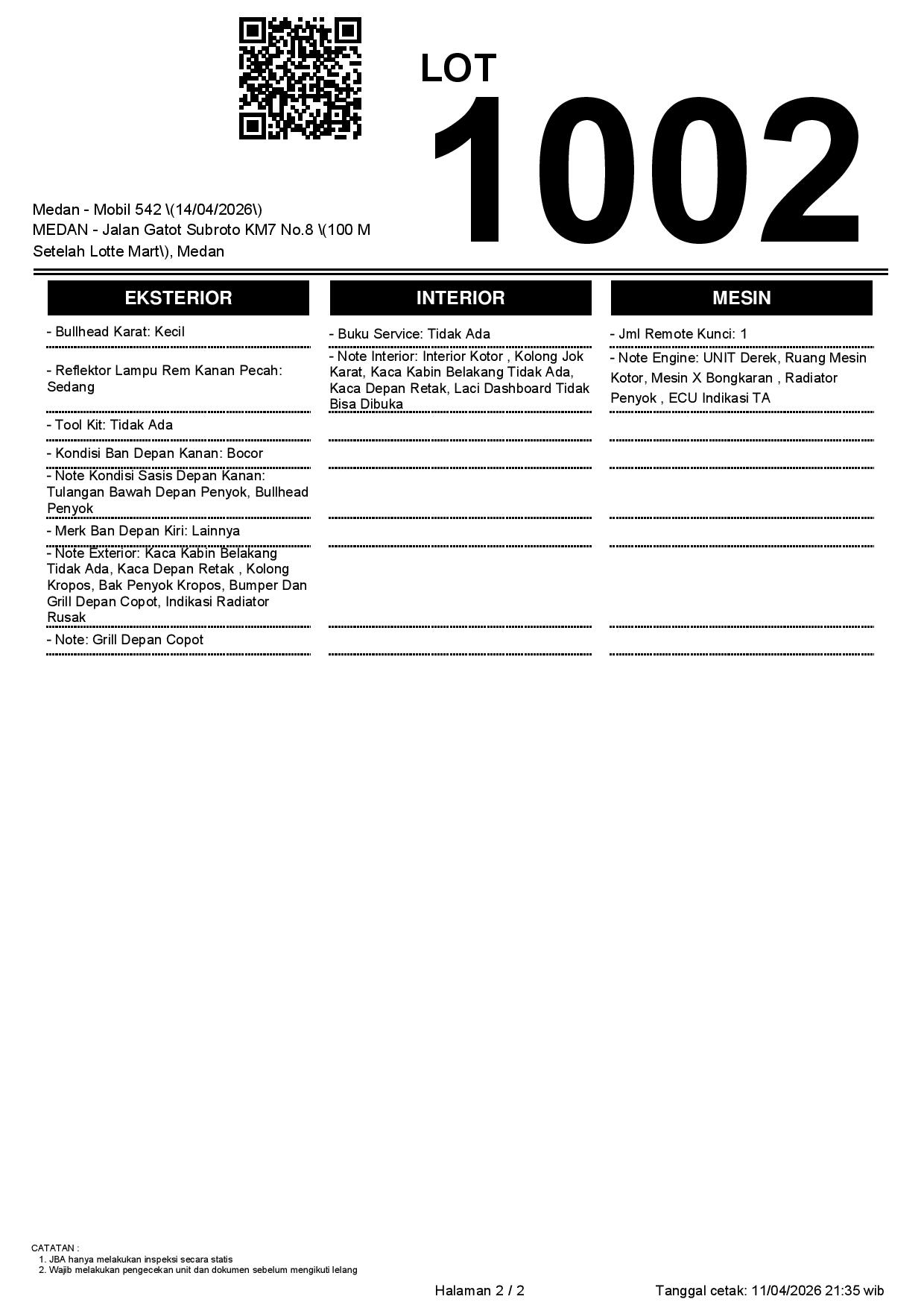 2. Peserta lelang wajib cek unit & dokumen