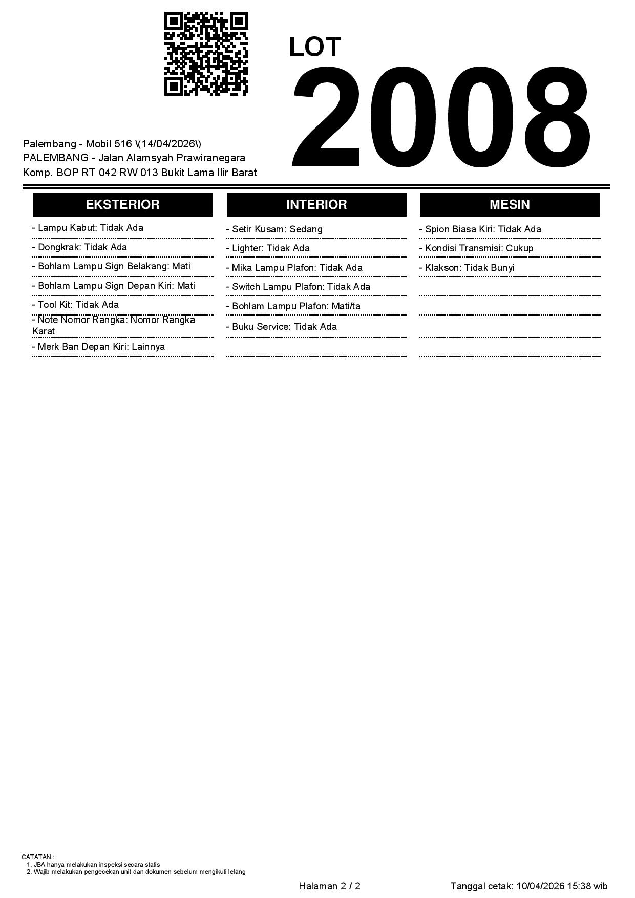 2. Peserta lelang wajib cek unit & dokumen