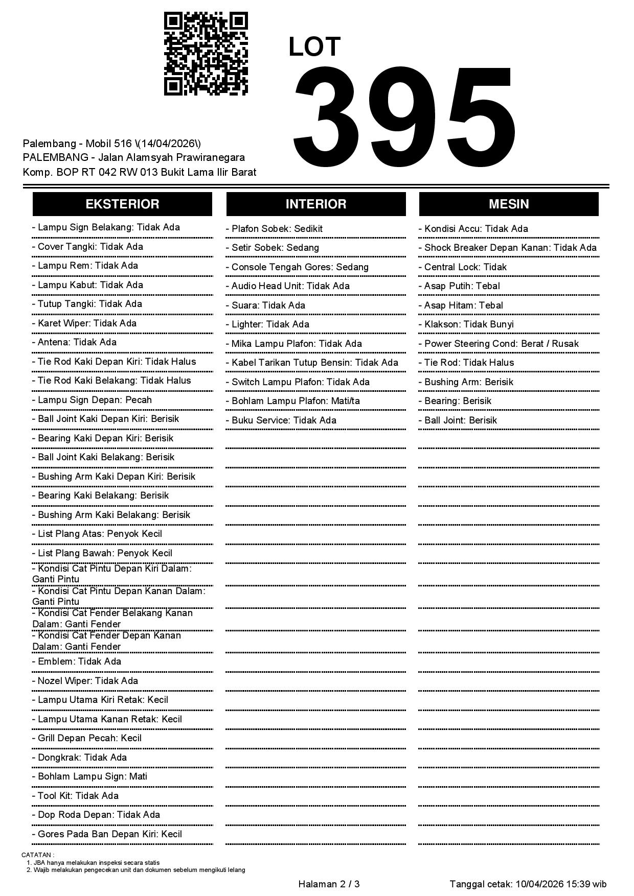 2. Peserta lelang wajib cek unit & dokumen