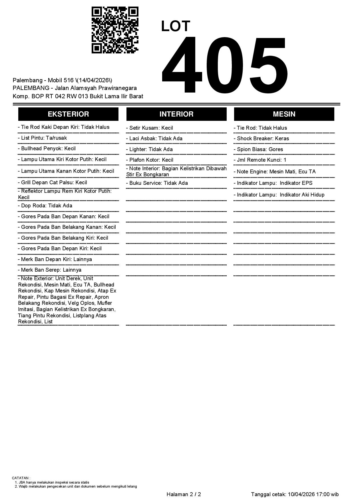 2. Peserta lelang wajib cek unit & dokumen