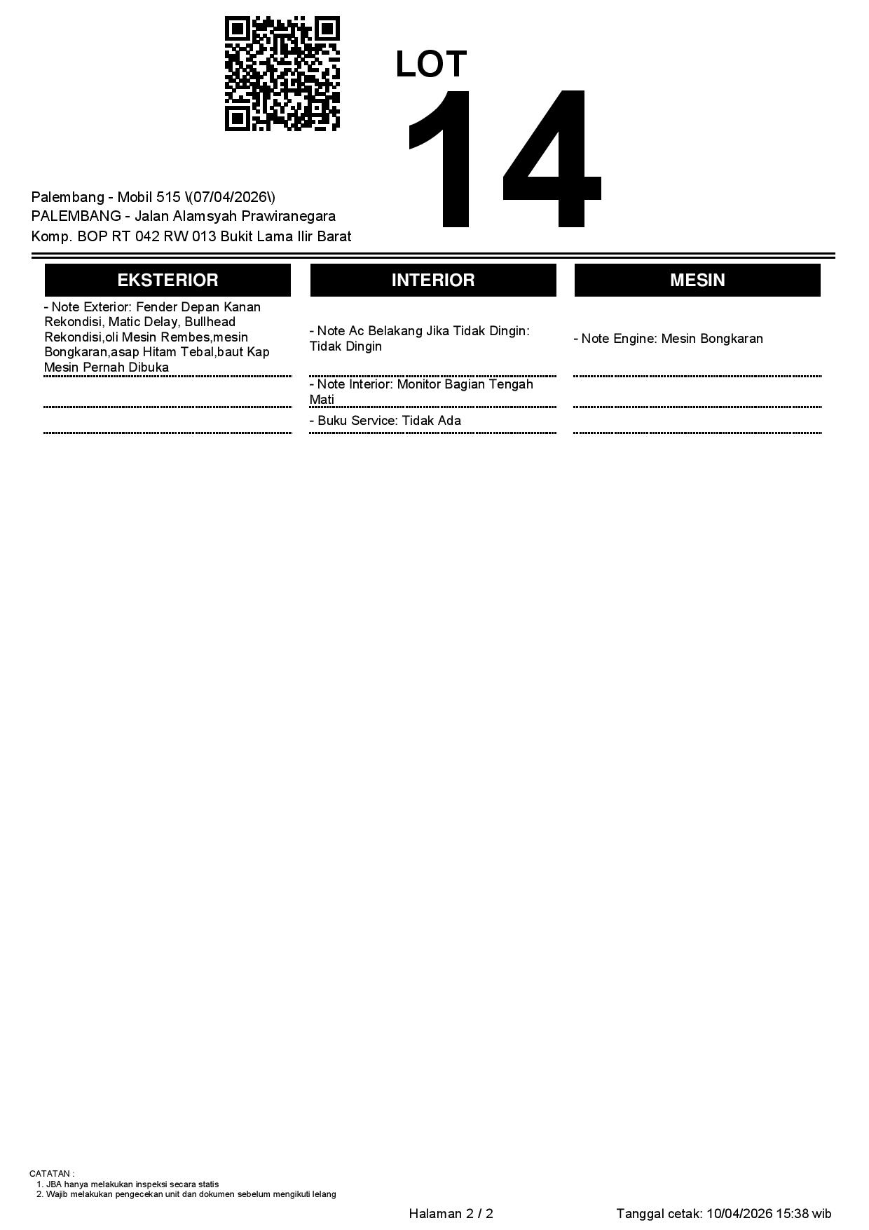 Tanggal Lelang: 14/04/2026 | 13:00 WIB