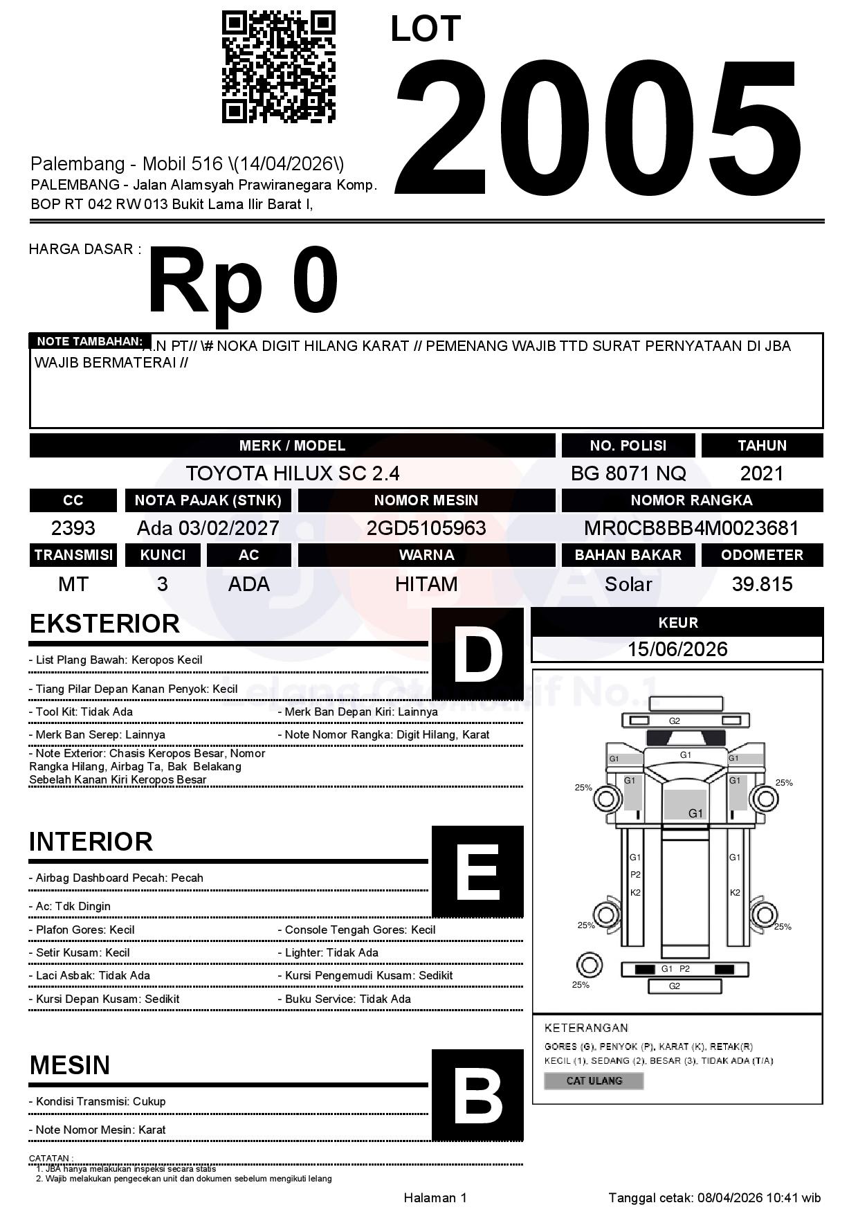 Tanggal Lelang: 14/04/2026 | 14:00 WIB