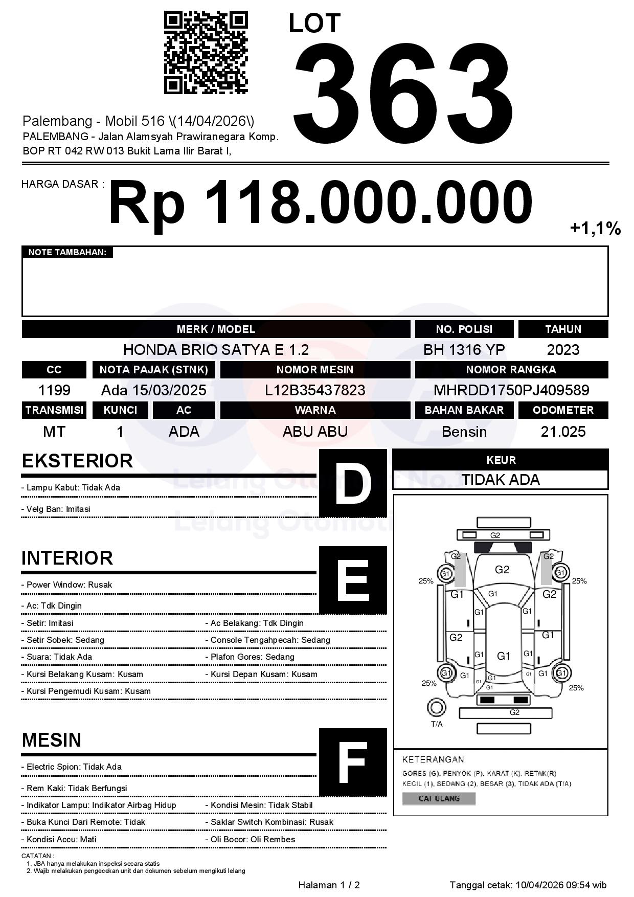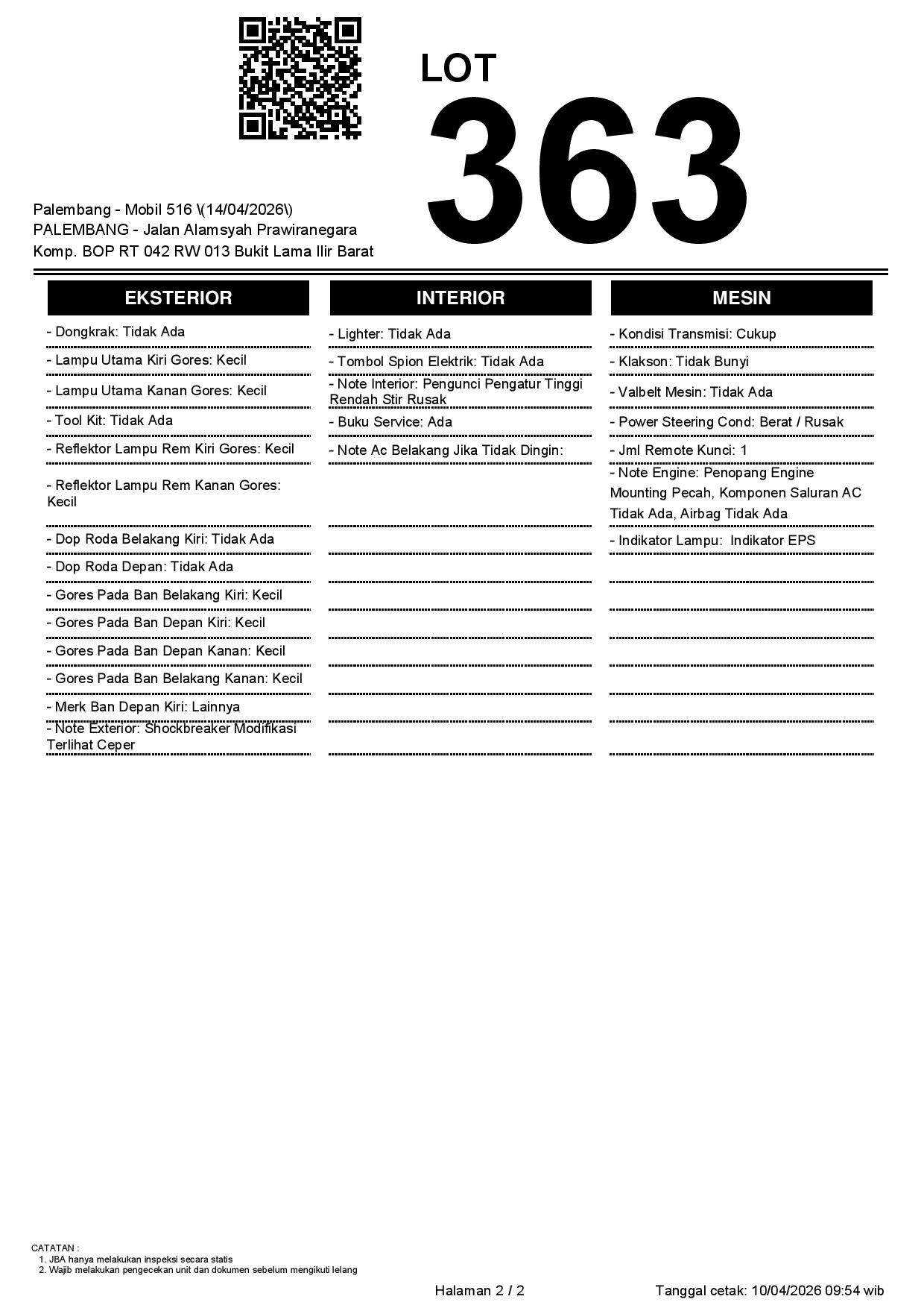 2. Peserta lelang wajib cek unit & dokumen