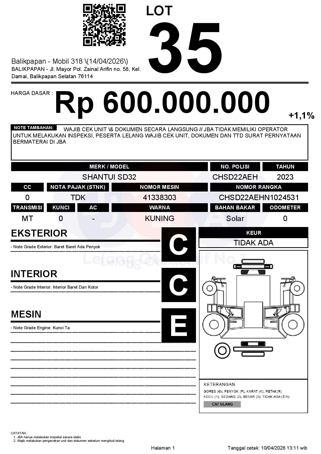 Tanggal Lelang: 14/04/2026 | 13:00 WITA