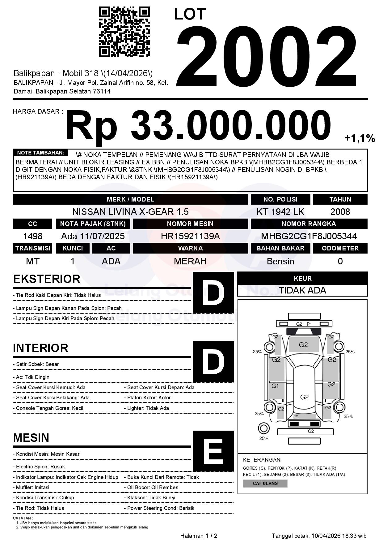 Tanggal Lelang: 14/04/2026 | 14:00 WITA