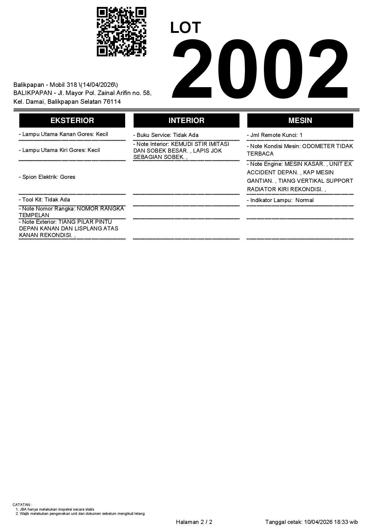 2. Peserta lelang wajib cek unit & dokumen