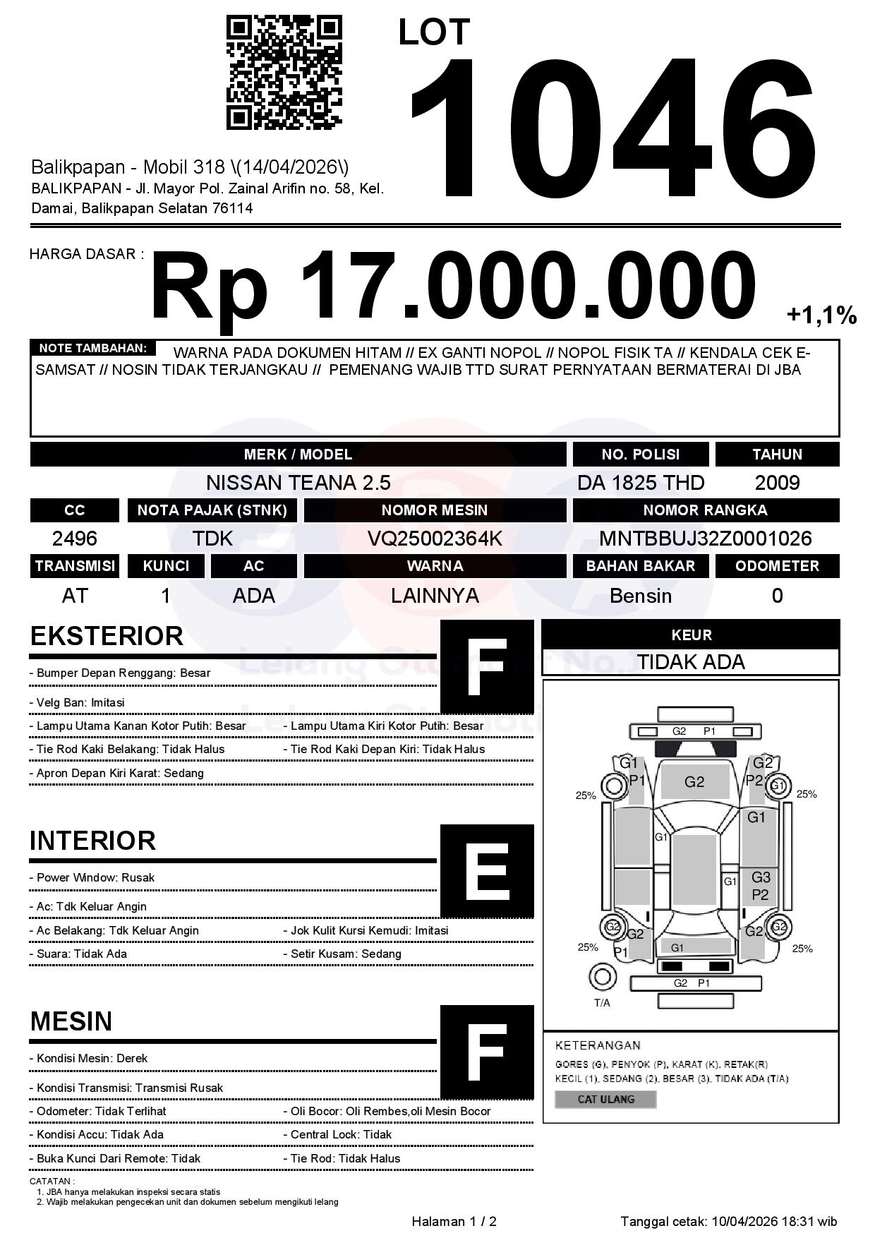 Tanggal Lelang: 14/04/2026 | 14:00 WITA