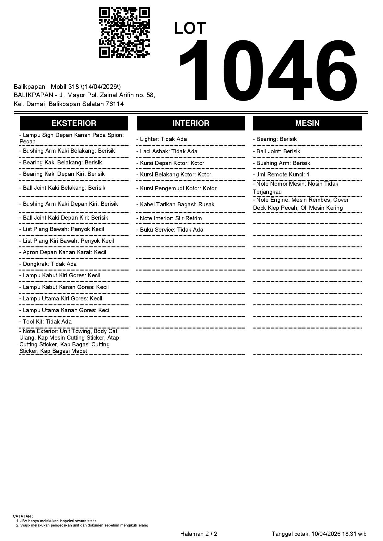 2. Peserta lelang wajib cek unit & dokumen