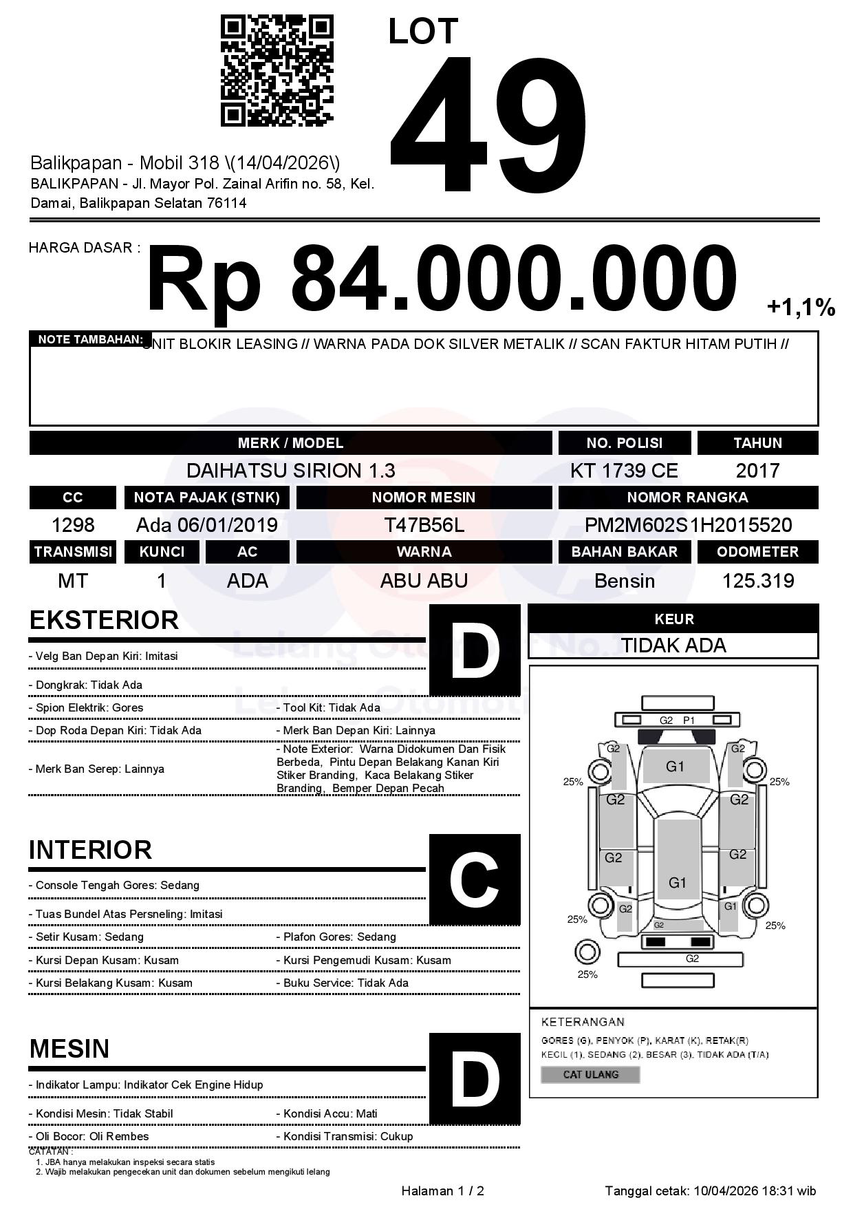 UNIT BLOKIR LEASING // WARNA PADA DOK SILVER METALIK // SCAN FAKTUR HITAM PUTIH //