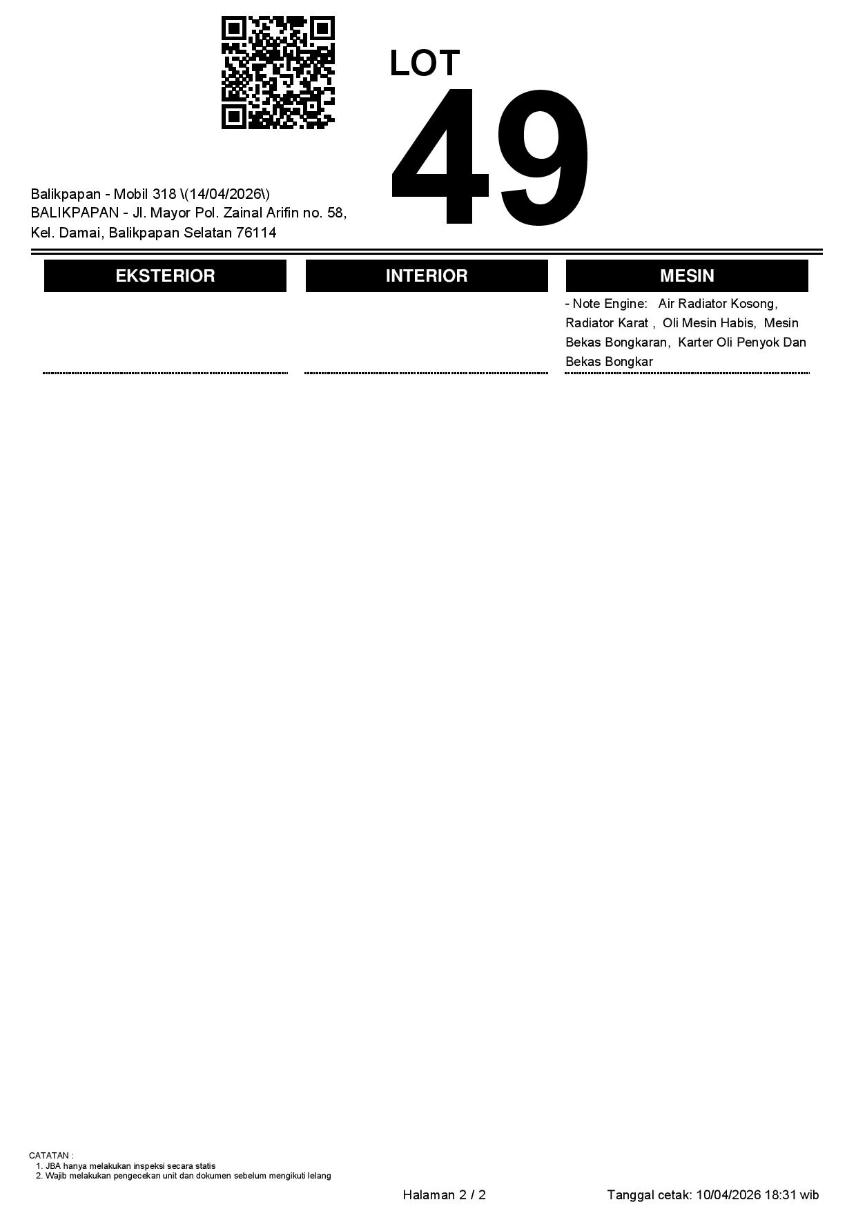 2. Peserta lelang wajib cek unit & dokumen