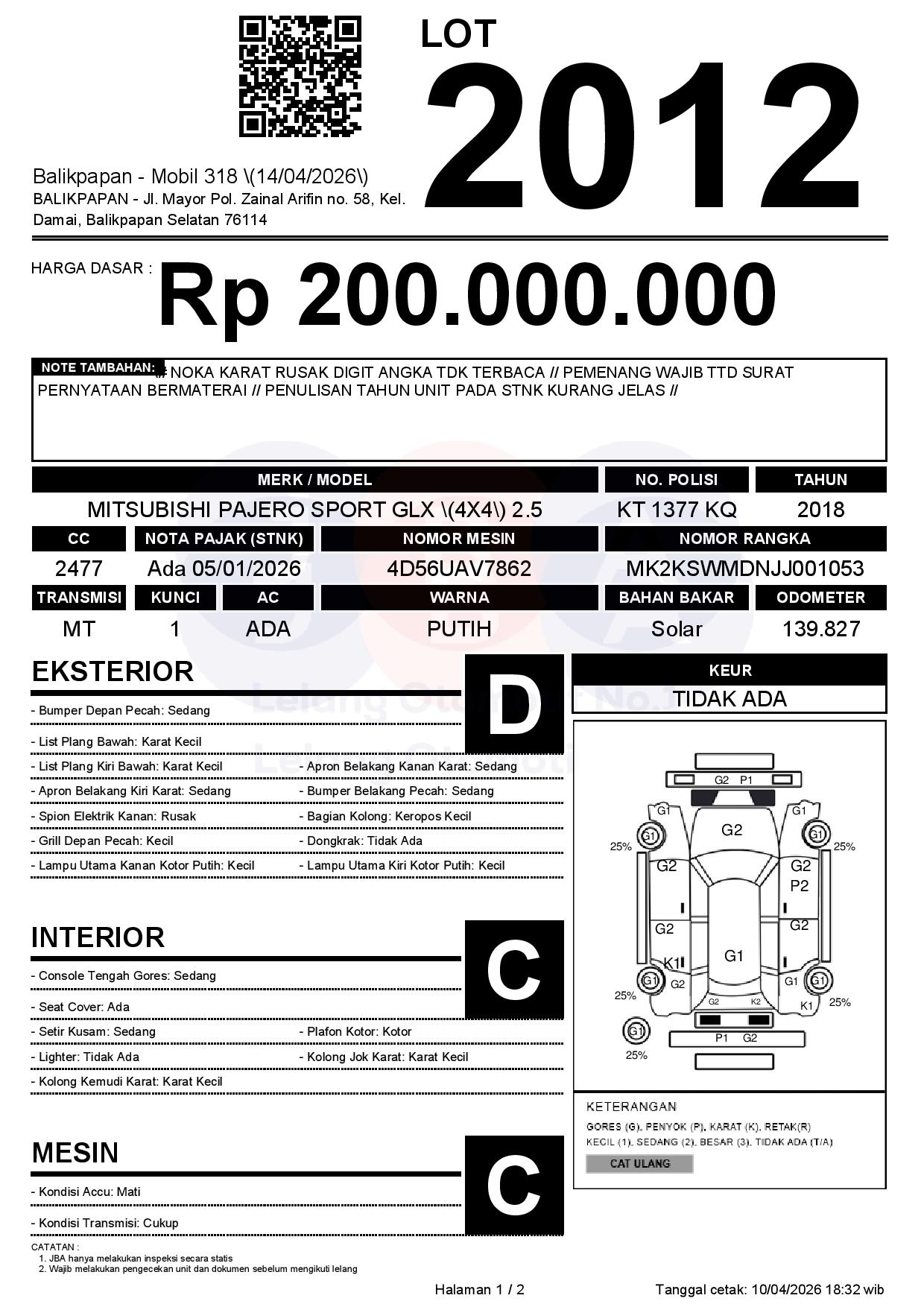 Tanggal Lelang: 14/04/2026 | 14:00 WITA