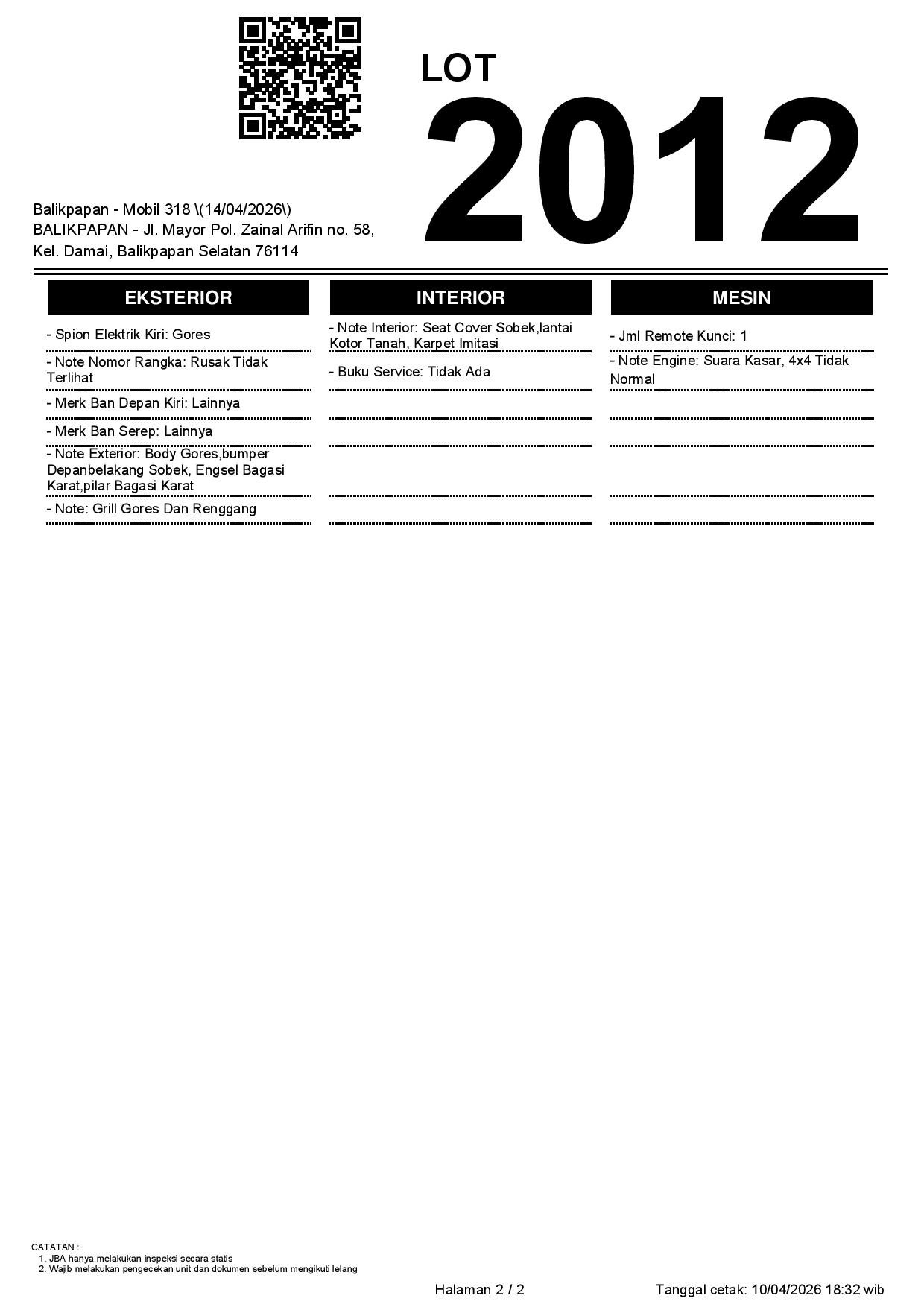 1. Peserta lelang wajib cek unit & dokumen